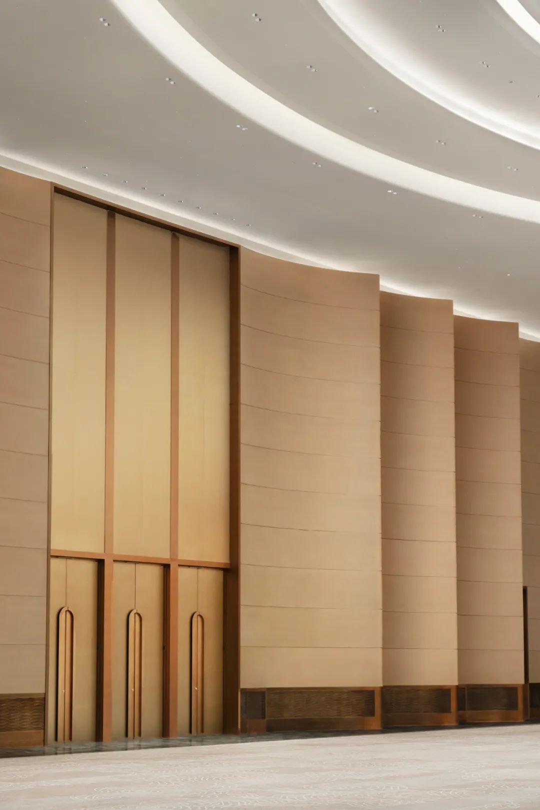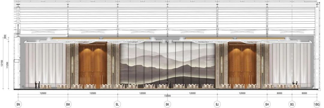 The interior design of the Grand Ballroom of China National Convention Center Phase II transforms the concepts of "boundlessness" and "freedom" from this Eastern philosophy into spatial language. Through modern design techniques and technological interaction, it creates an international-level venue that combines cultural depth with a sense of futurism.