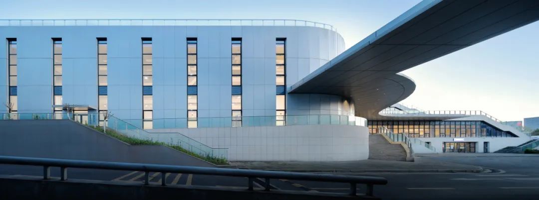 沿城市主干道的厂房,立面材质选用与办公楼一致的铝板,通过横向线条增加立面延续性,形成良好的城市界面。