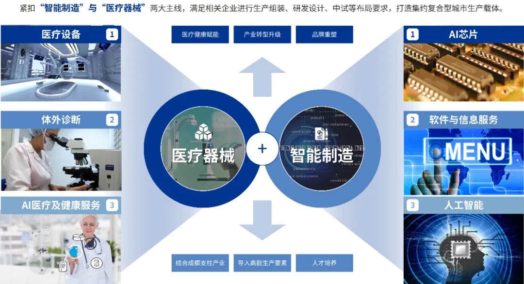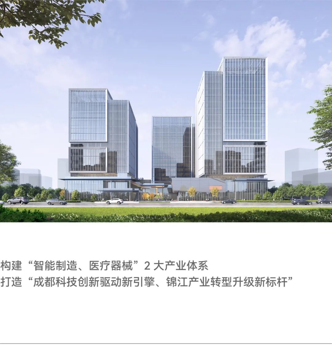 依托锦江区打造未来“都市工业”、达成高质量经济增长极的核心需求,本项目锦江经开区智能制造总部基地结合产业规划、产业基础与周边现状三方面情况,构建“智能制造、医疗器械”两大产业体系,布局“研发、小试、中试、生产”四大环节,着力打造“成都科技创新驱动新引擎、锦江产业转型升级新标杆”。