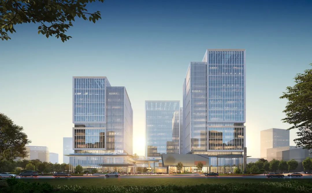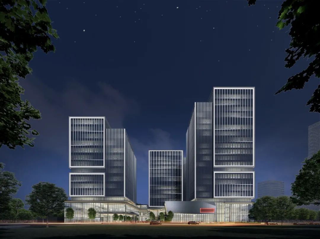 场地中部与北侧的中国生物研究所、东侧的城市体育公园相融合,串联打造园区多层次的生态配套轴线。于西南侧裙楼部分构建完善的项目配套功能,涵盖高标准企业展厅、员工食堂、大型会议室等功能。同时,项目裙楼通过横向错动的连廊空间进行串联,打造高效便捷的产业园区。