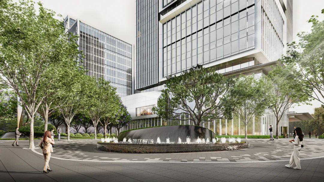 下沉空间:通过地面铺装与草坪的元素丰富空间变化,结合树阵外摆打造休闲庭院;人们在这里品茗畅谈、休憩赏景,开展办公共创、文化展示等多种活动。