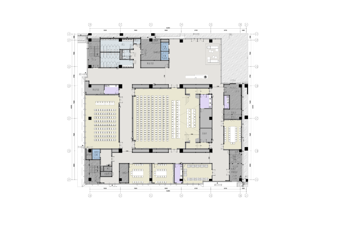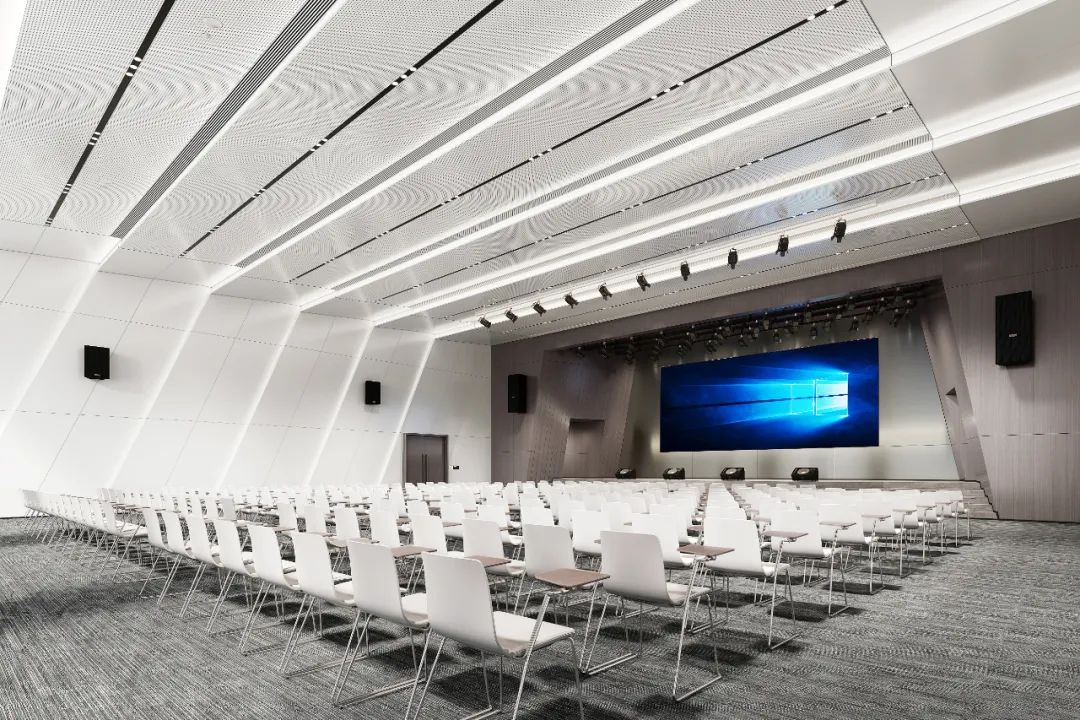 配套用房会议中心:整层打造多功能会议接待中心,平面规划时充分考虑各类型会务空间,配备大型报告厅、中型报告厅、小型会议室及接待室等功能空间,设计手法上延续展示空间、办公空间基础调性,为本项目增添更多的可能性。