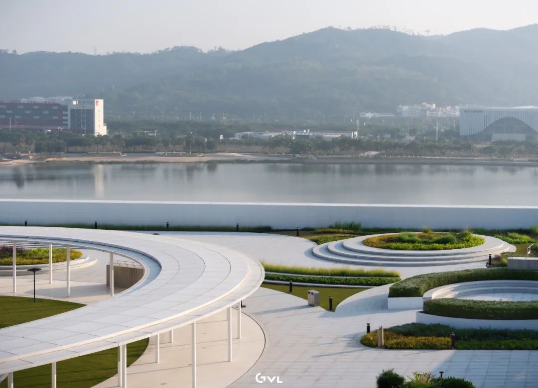 设计团队摒弃了将建筑置于景观之上的传统模式,传统建筑封闭的“盒子”形态被打破,转而提出“山水横琴,大湾客厅”的核心策略,建筑与景观的边界逐渐消解。通过逐层退台的立体花园设计,将小横琴山连绵的绿色肌理,以一种垂直、可漫游的多元化方式,一直延续到天沐河岸。这不仅是一种建筑形态,更是一个自下而上的生态系统。
