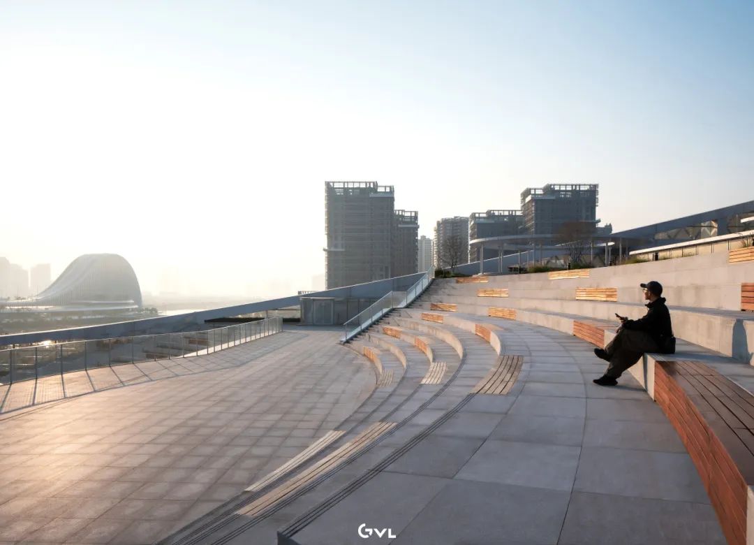 观景平台采用阶梯式与多平台设计,不仅为各类文化活动提供场所,也强化了景观的层次感与动态效果。