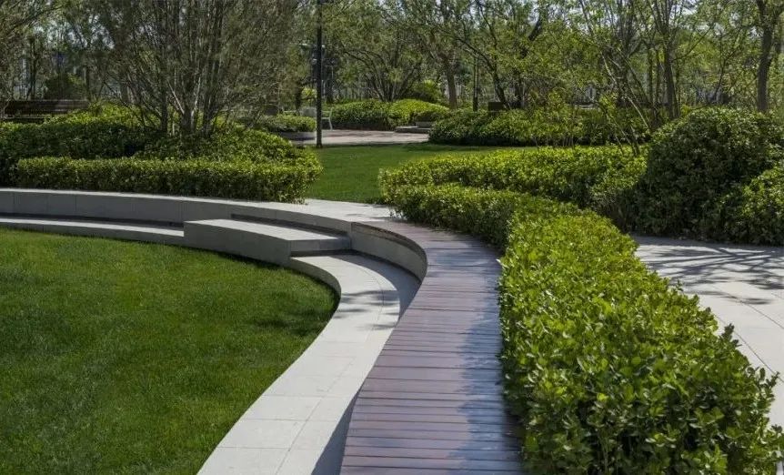 项目穿插布局多处花园空间,通过多层次植物群落、自然花境景观、静谧的林荫,营造治愈心灵的林下花园景观。自然曲线的园路串联各花园节点,配以休憩座椅与景观小品,为使用者提供与自然对话的疗愈场所。