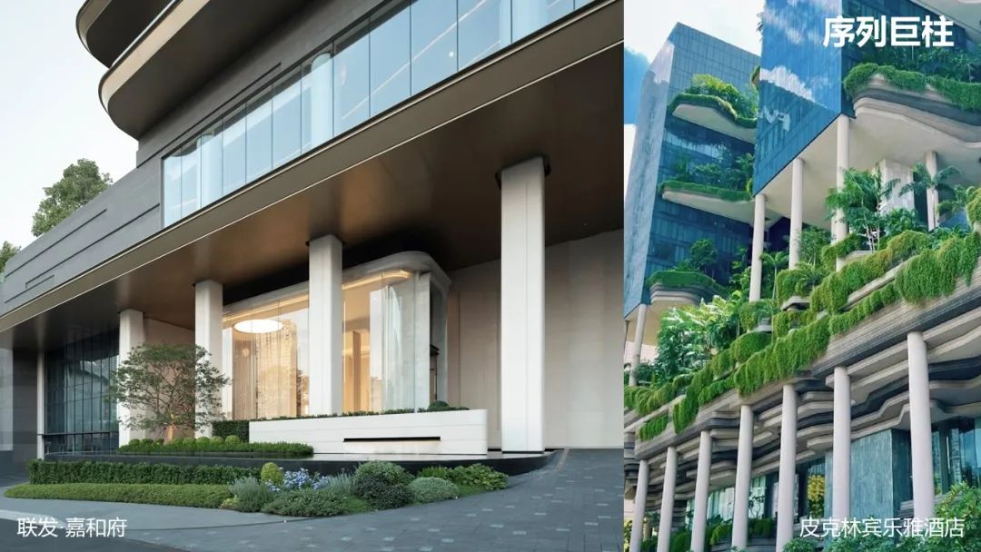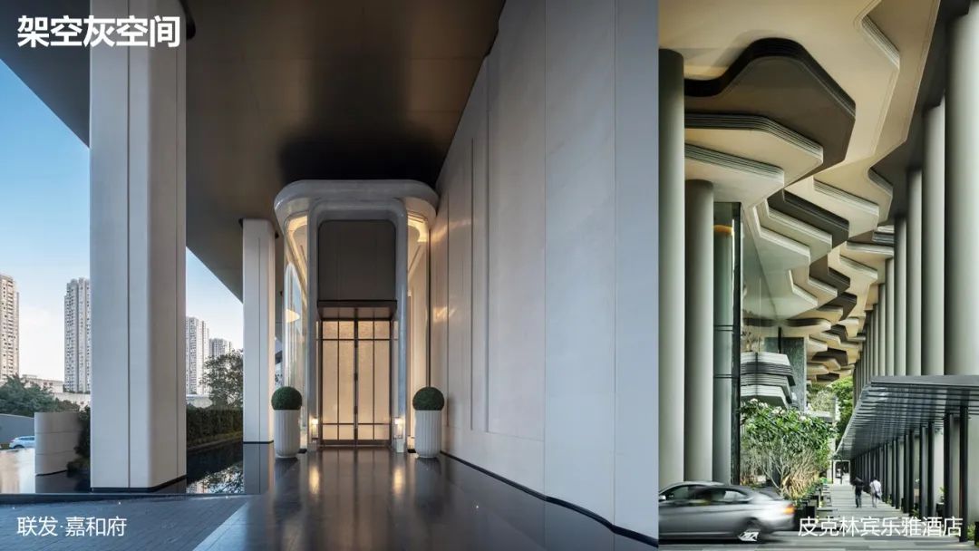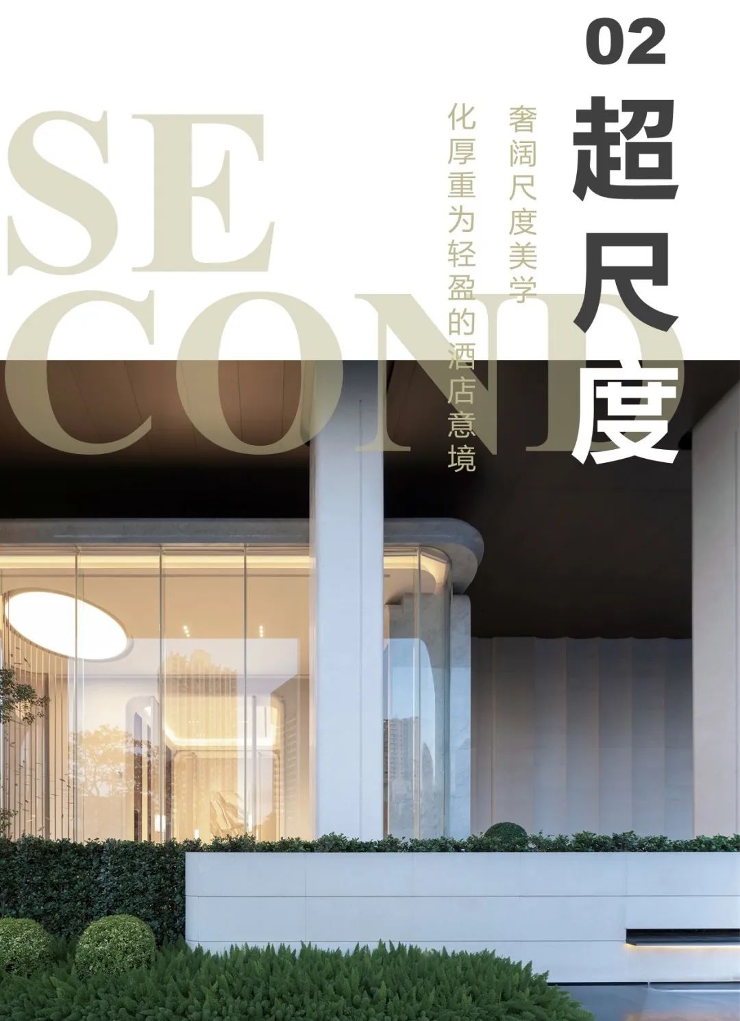 序列巨柱与超尺度的体量容易营造出厚重的空间感受,而通过架空灰空间、横向线条的极简处理、材质本真的外露设计以及玻璃体块的穿插,将厚重的建筑体量转化为悬浮的轻盈姿态,最终呈现出如新加坡皮克林宾乐雅酒店般的云端意境。