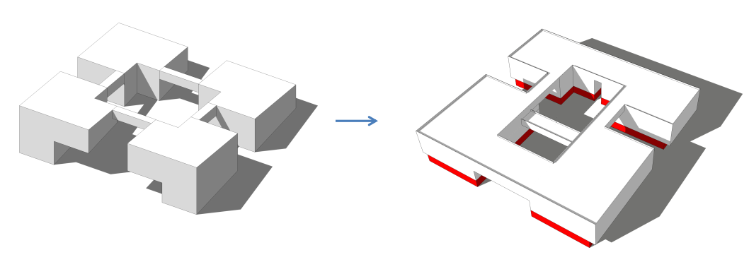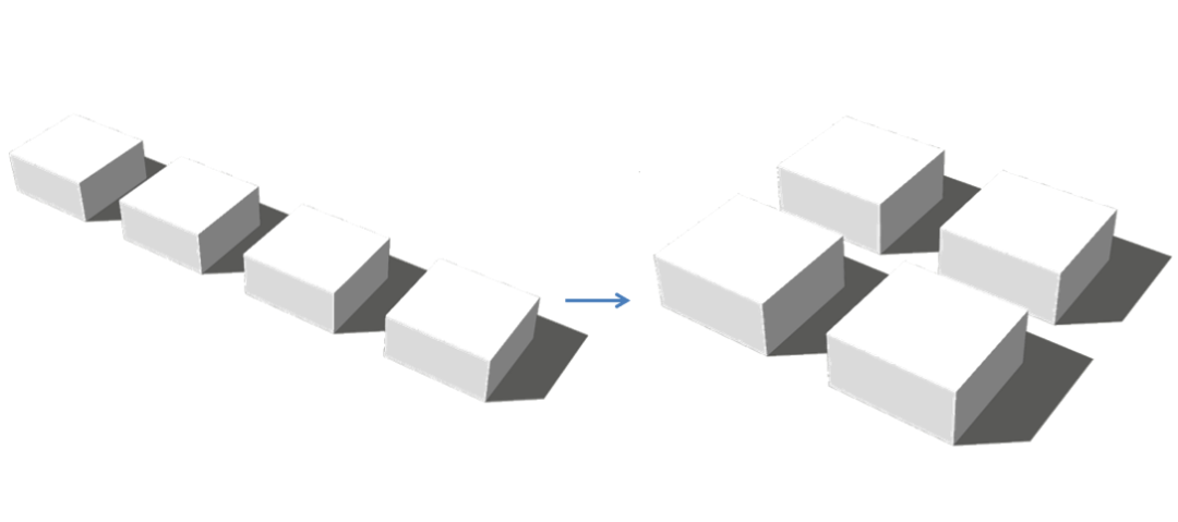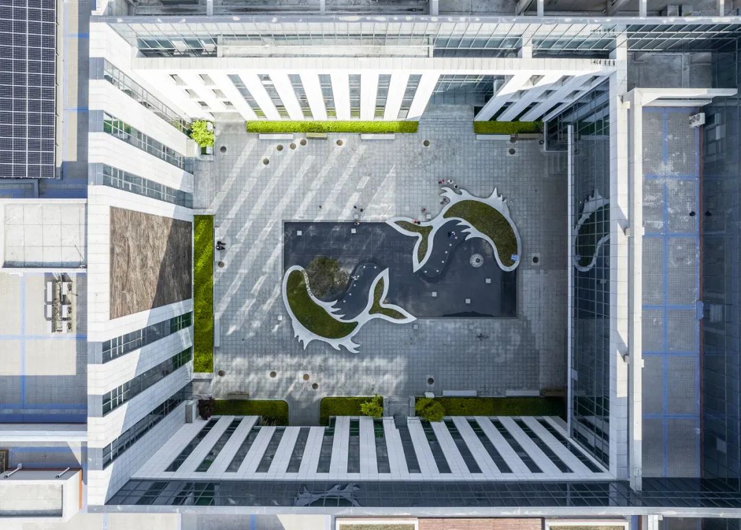建筑整体造型为一个简约的方体,通过四个单体之间的架空连系廊以及不同层次和深度的出挑,给平坦外立面营造出动感,形成独特的建筑个性。