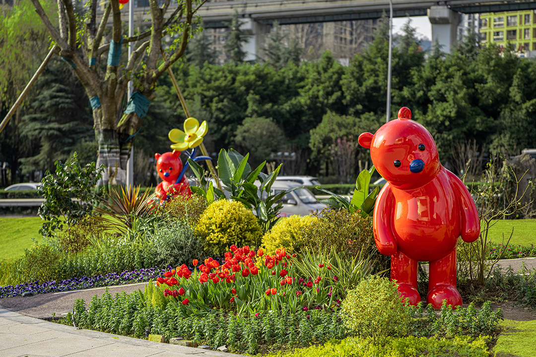 片植时令鲜花,提升金渝立交的绿化空间,丰富视觉感受。