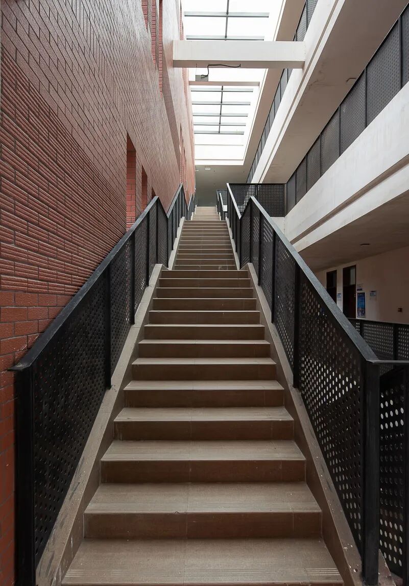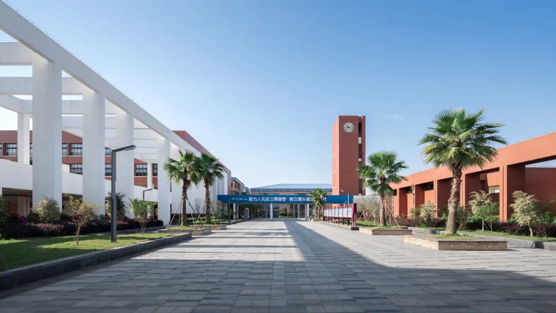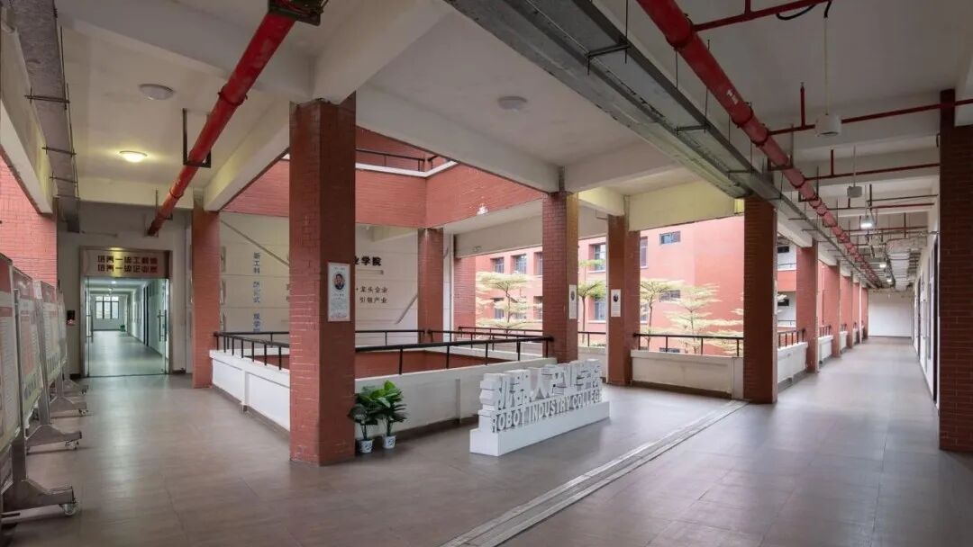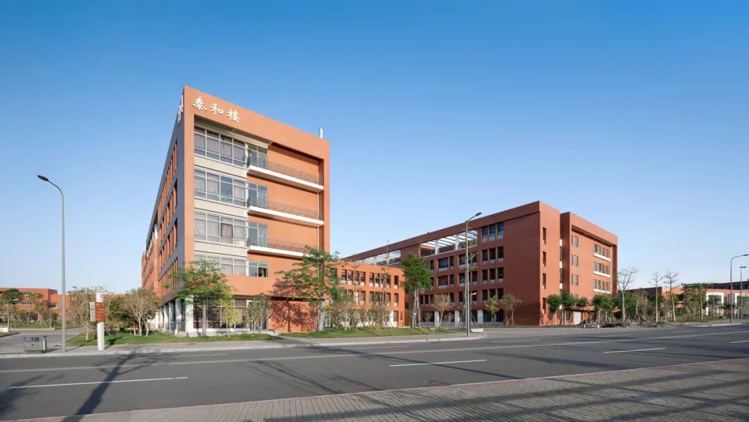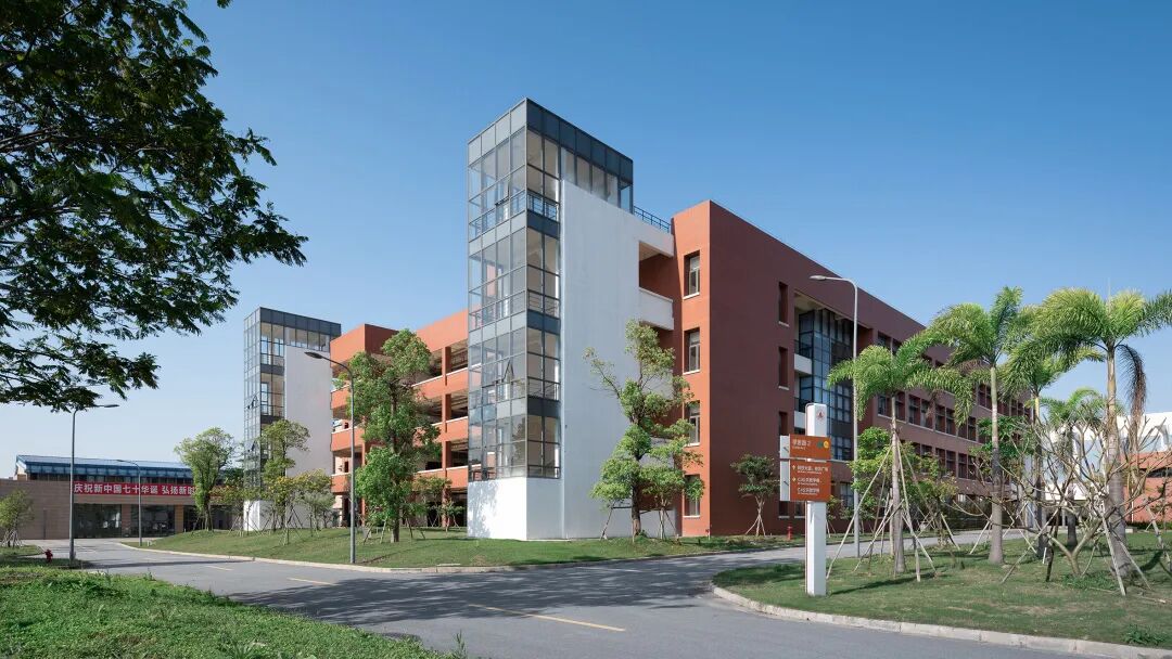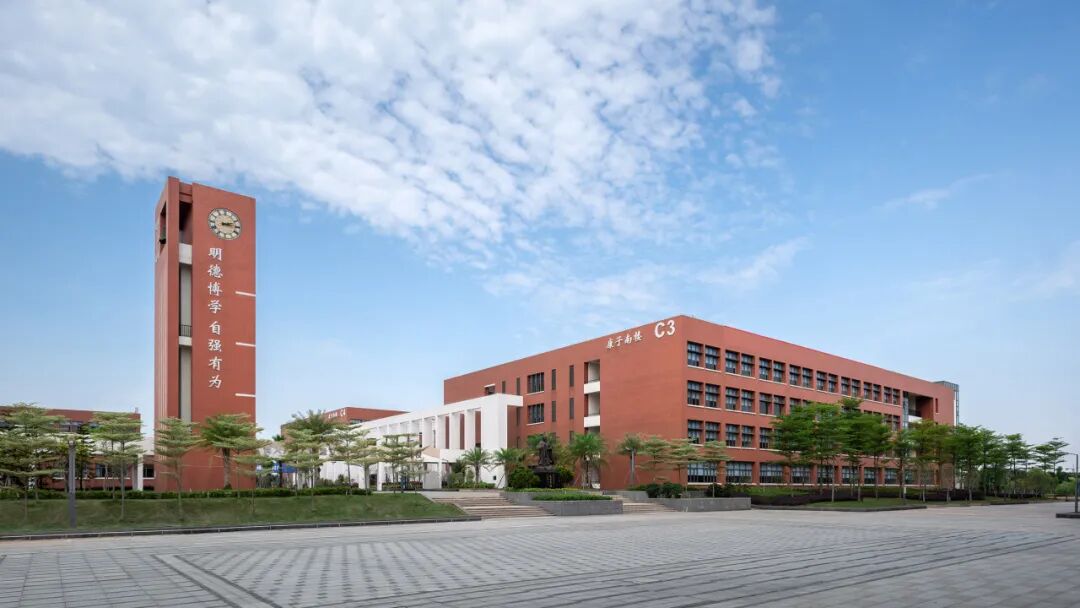 校区建筑采用标志性红砂岩色调,立面主要材料为仿其质感的面砖,通过现代材料工艺演绎岭南传统建筑语汇,塑造出既有地域辨识度又契合理工科院校气质的建筑典范。