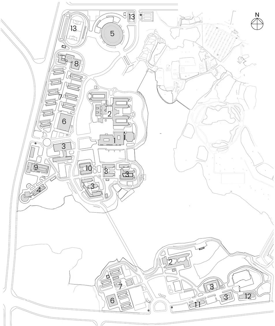 通过科学规划功能分区,在确保各区域独立性的同时构建开放互联的空间体系,营造促进跨学科交流的校园环境;通过资源集约化管理,优化校园功能布局,强化教学科研核心功能,实现后勤服务社会化运营;秉承生态优先原则,将场地原生景观与多元文化有机融合,以人文传承为内核,打造可持续发展的校园典范。