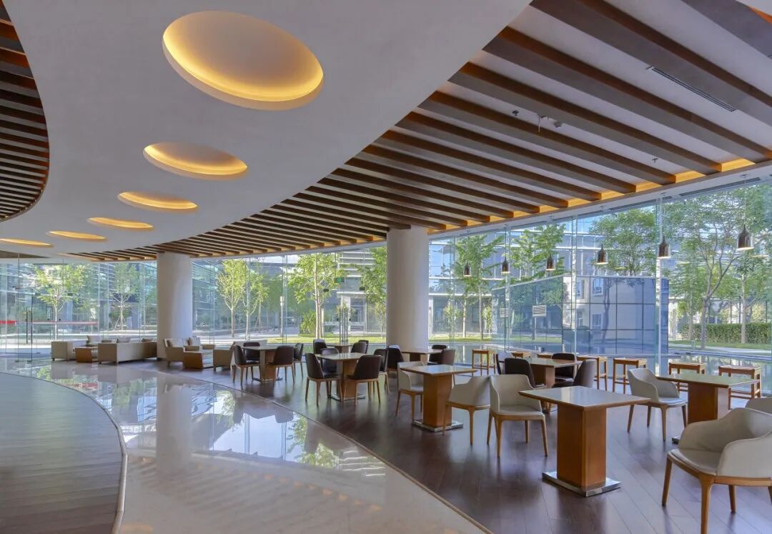 圆形的服务中心,是规划的点睛之笔。游泳健身、图书体检、餐饮咖啡等多功能环绕圆形光庭展开,为科学家提供了精致完善的生活体验。绿色生态的双层可呼吸式玻璃幕墙,更为高品质的生活体验保驾护航,力求绿色低碳的高标准设计。
