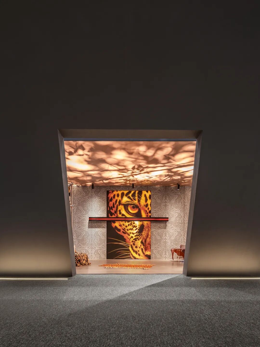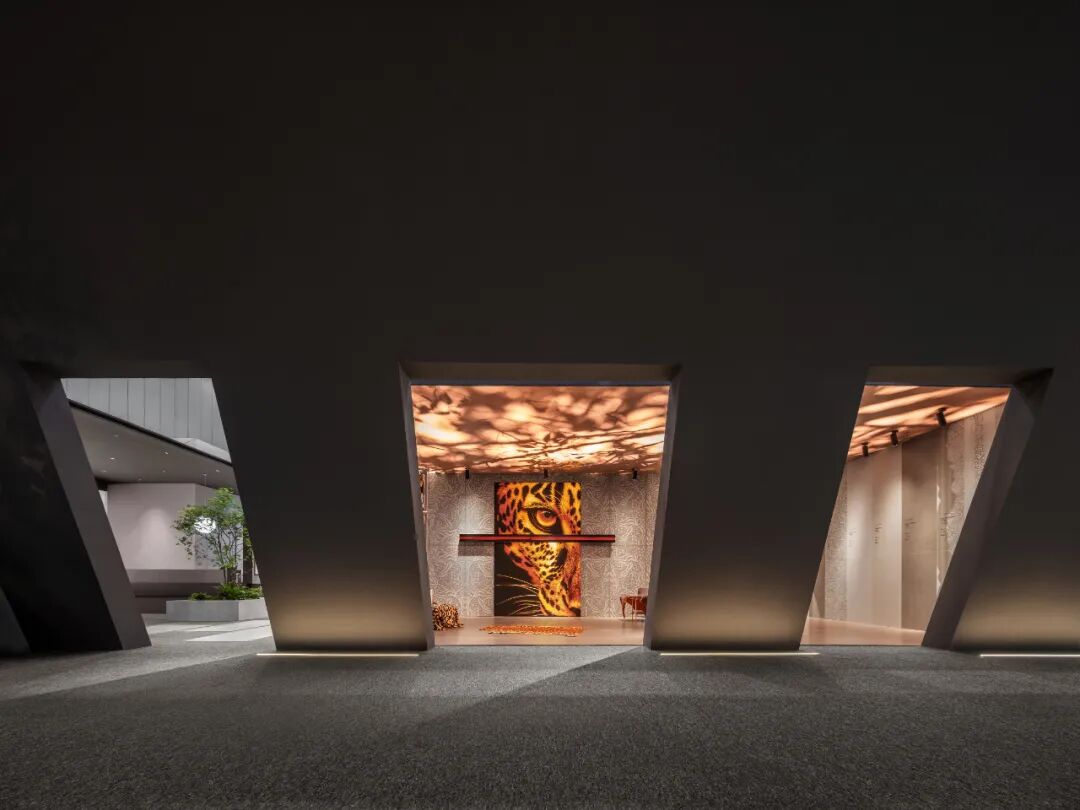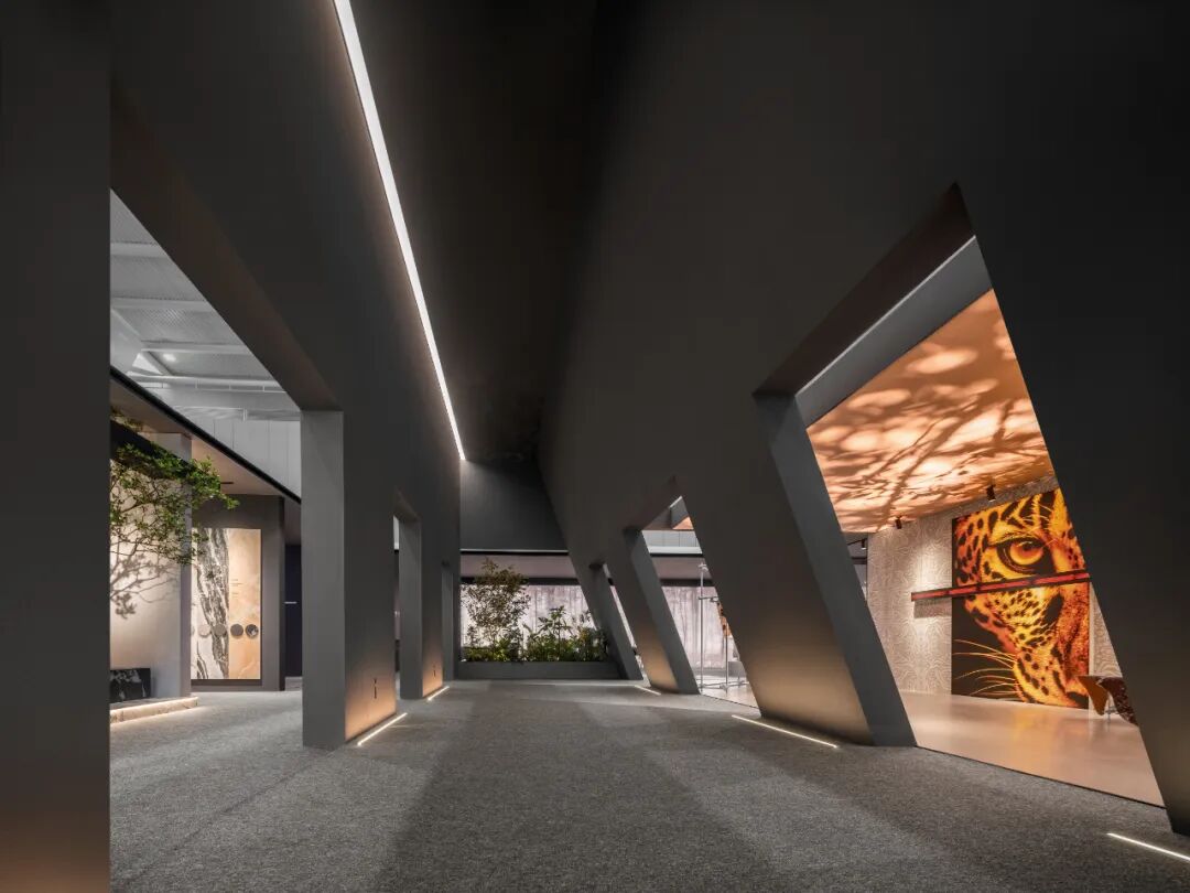 通道另一侧的展区以炽热的生命能量构筑空间,以豹首图腾为视觉核心,形成具有视觉张力的空间。