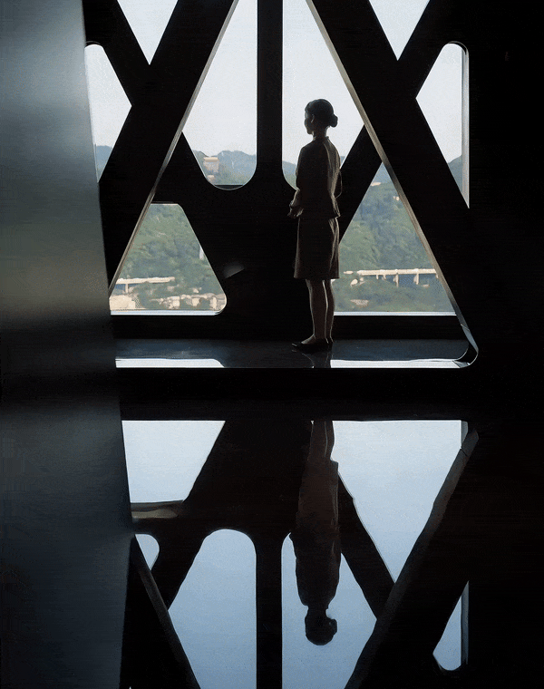 对称交织的厅廊空间