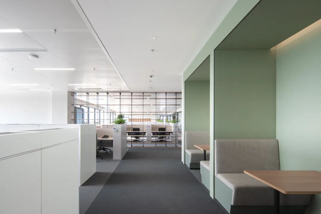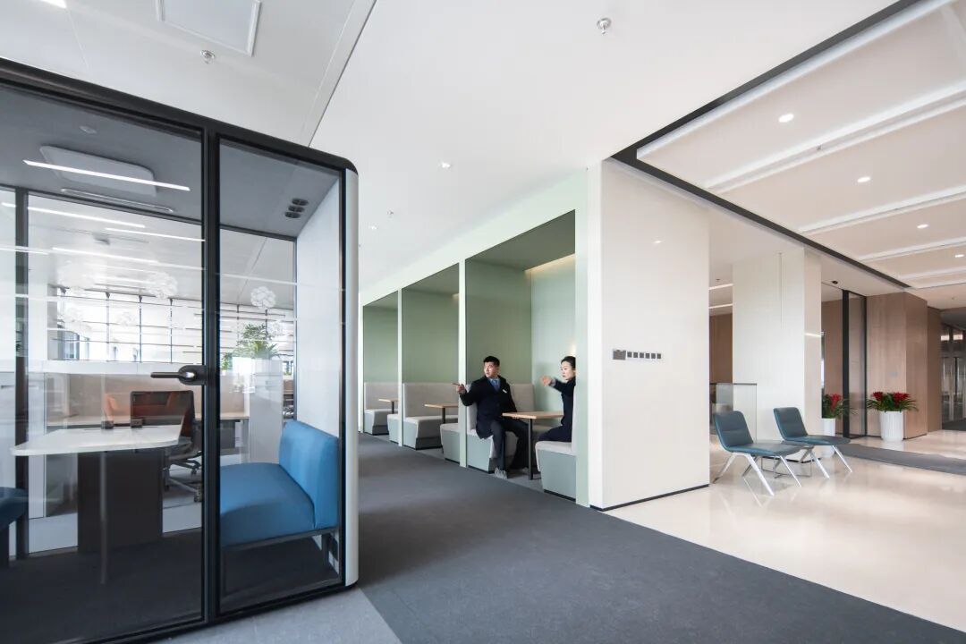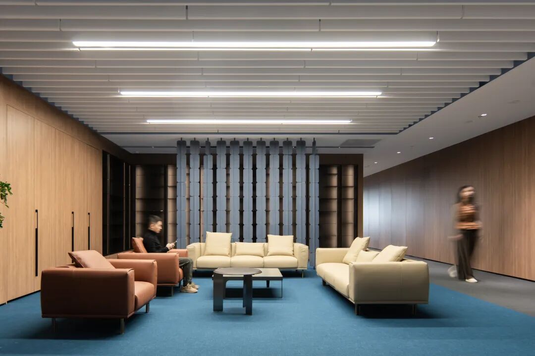 在当代都市语境下,办公空间早已超越单纯的功能性承载,转而向人文、自然与效率共融的新范式演进。艺瓦建筑设计以此为契,于福寿园总部三楼办公室项目中,践行“归于自然,返还天地”的哲学理念,打造出一处融合当代亲生物设计(Contemporary Biophilia)与现代企业精神的标杆型办公环境。我们坚信,空间的情绪由材料书写。在整个楼层中,天然榆木饰面、温润大理石、织物与绿植成为视觉与触觉的主笔。它们不仅赋予空间以自然的亲和力,更在细节处传递出宁静、治愈的场所精神。接待厅的木与石对话,开放区的吸音系统与地毯肌理,乃至休闲露台的绿意延伸——每一处皆在低调中诠释着“办公如归”的温暖体验。基于对企业组织行为的深入洞察,我们重新规划了空间流线:独立设置员工、高管、后台部门及VIP访客动线,极大避免了交叉干扰,提升了办公效率与隐私性。与此同时,会议室与电话间的科学配比、灵活工位的设置、储藏与茶水功能的合理嵌入,均在细微处体现对“人”的尊重与关怀。本项目不仅满足当前员工的办公需求,更预留了扩展工位的可能。会议空间配比优化——会议室及专注电话亭,涵盖3-6人小间、7-10人中型会议及10人以上大型会议,匹配多种协作场景。走廊面积压缩30%,转而赋予更多共享与休闲功能,使空间真正服务于人,而非结构。在开放办公区,自然光与人工照明和谐共处;休闲区内,肌理漆、软包、渐变地毯与绿植共筑轻松氛围;高管办公室参差有致,融实用性与美学为一体。我们试图模糊办公与生活的界限,让每一个角落都能成为灵感萌发、身心安顿之地。福寿园总部办公空间,不只是一次室内改造,更是一场关于办公本质的思考与回归。艺瓦建筑以设计为语言,以自然为媒介,在企业需求与人文关怀之间找到平衡,赋予空间以温度、弹性和可持续的生命力。我们致力于打造不止于美观,更契合人与未来发展的空间作品。