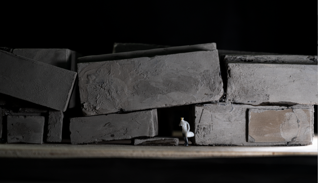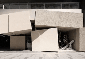 去除原本大理石的豪华感,将石材本身龟裂的自然面露出,让工地中石材本身堆叠作为陈列及货品放置的地方。