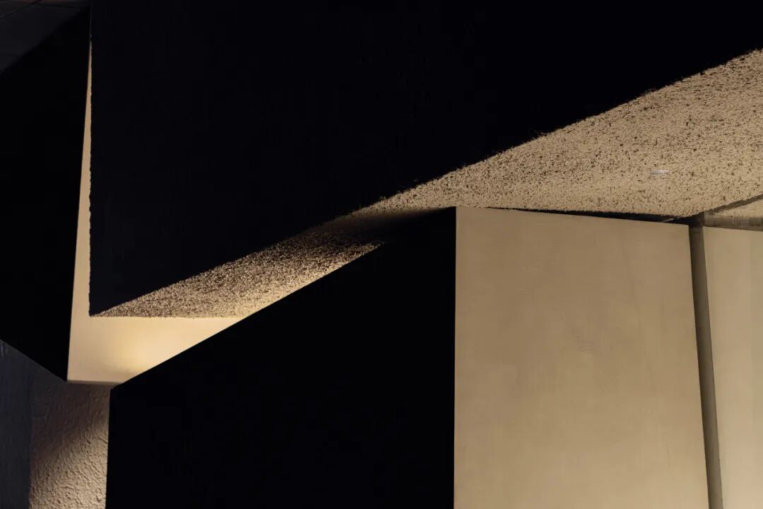 空间设计着重探讨身体性和空间及功能之间的关系,将结构,重力和相互作用力在空间中结合功能表达,给人一种宛如置身于巨石缝隙之中的感觉。人们可以通过不同结构之间的缝隙进入不同功能区域,空间结构的公共性与私密性自然划分了功能,每一处都带给人们独特的体验。
