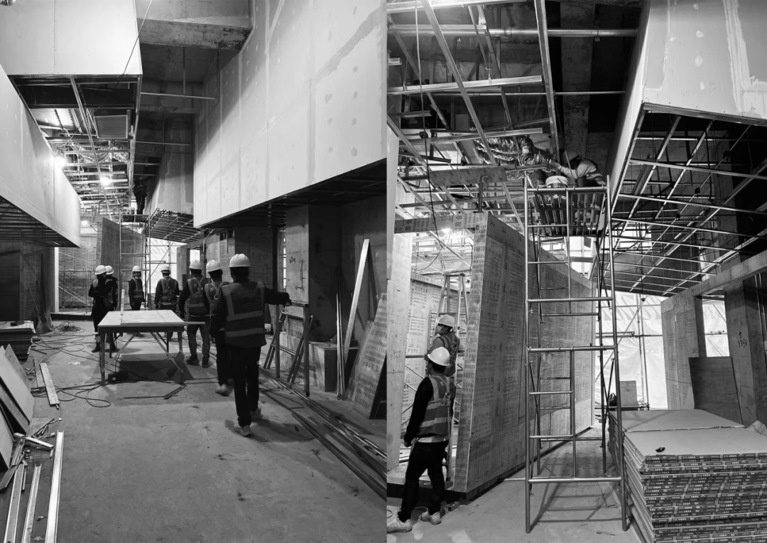 The original site featured 18 concrete columns distributed in an orderly yet dynamic layout. The design leverages the full depth and height of the space, skillfully incorporating these 18 original structural columns to create a multi-functional environment composed of diverse scenarios.