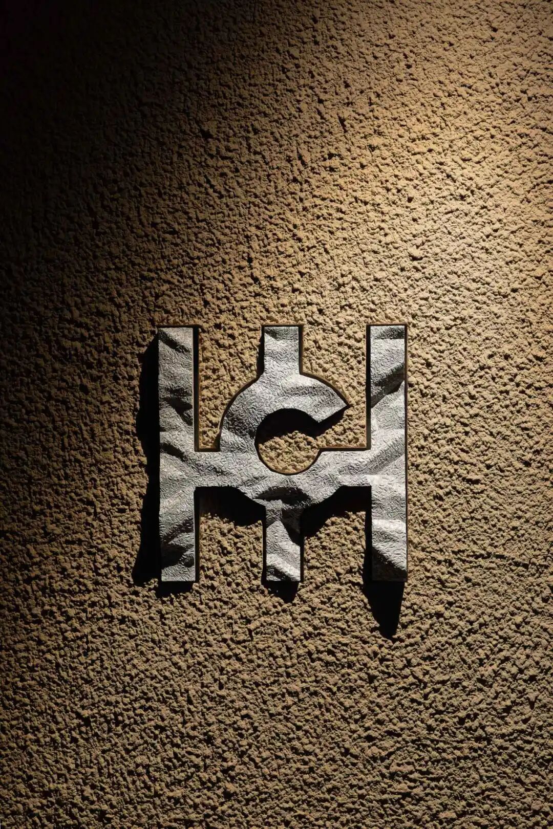 通过工匠反复捶打铸铝的表面形成手工捶打痕迹,让logo本身表面增加工匠的情绪与温度。
