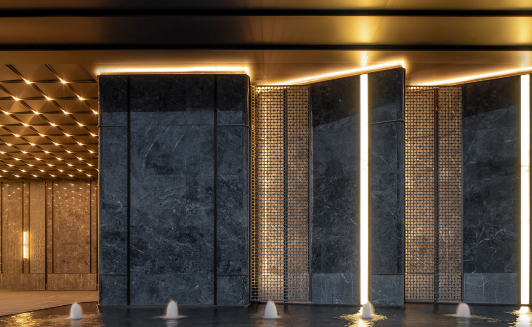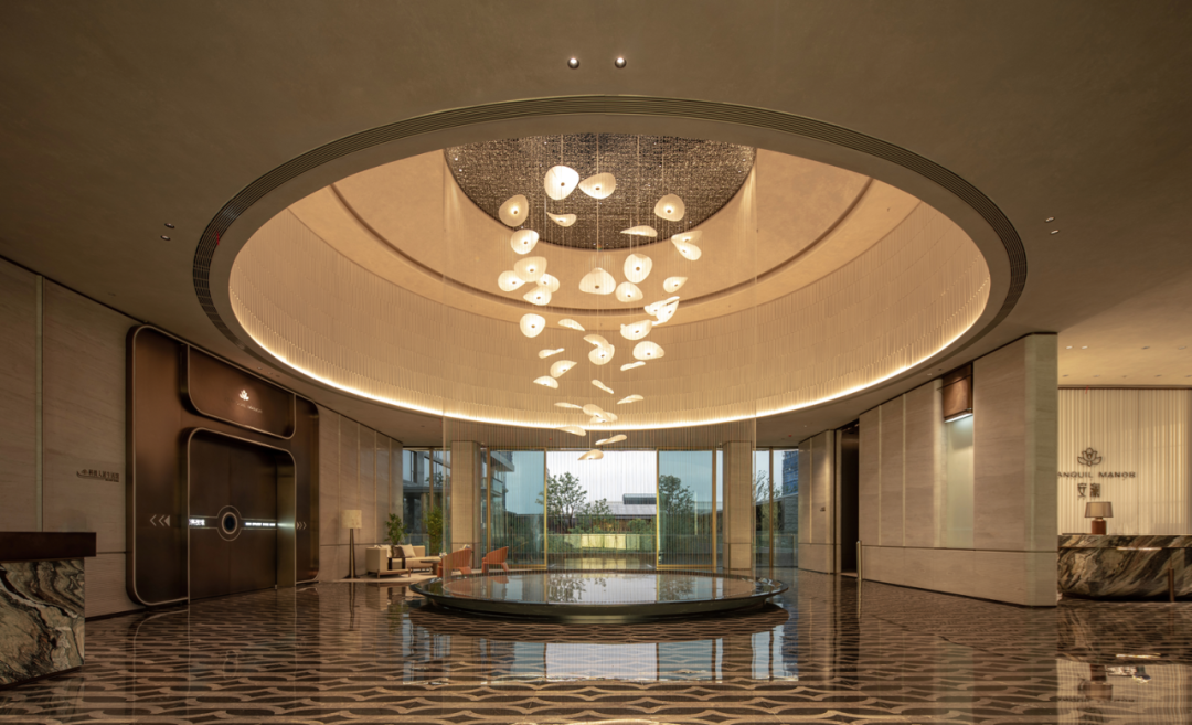 璀璨的星辰顶灯与巨幅发光云石交相辉映,