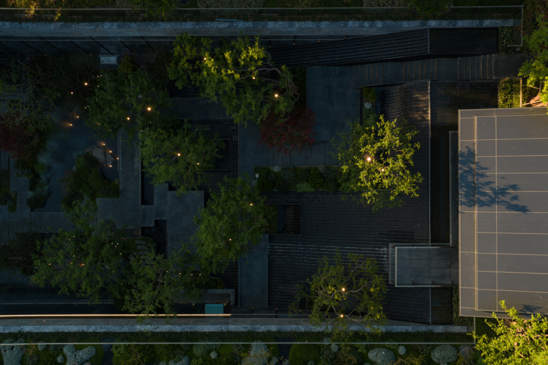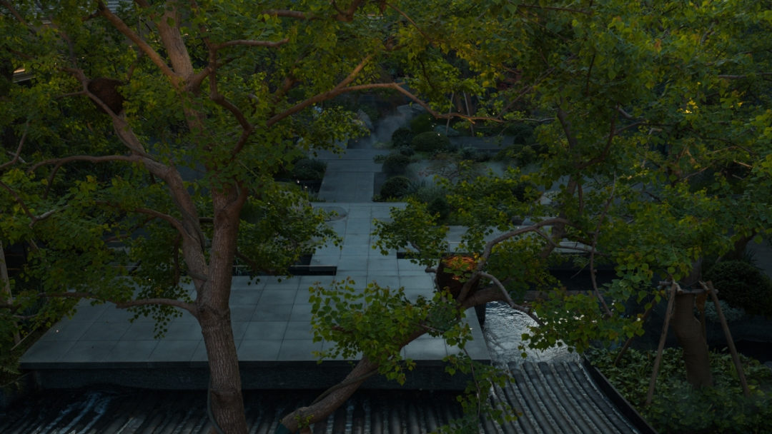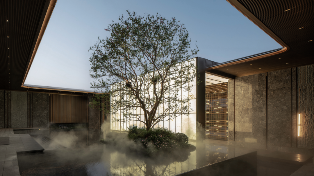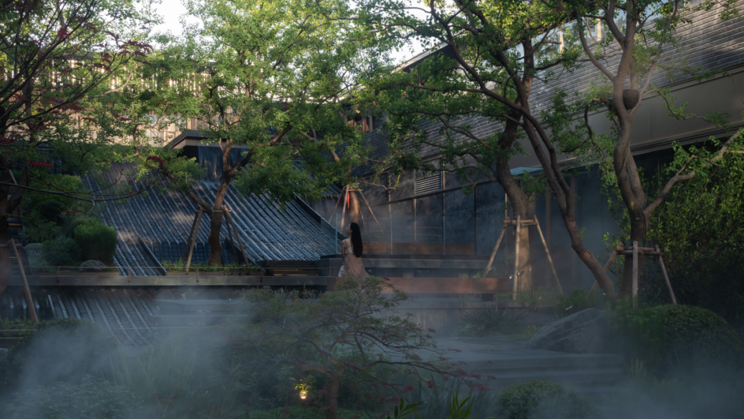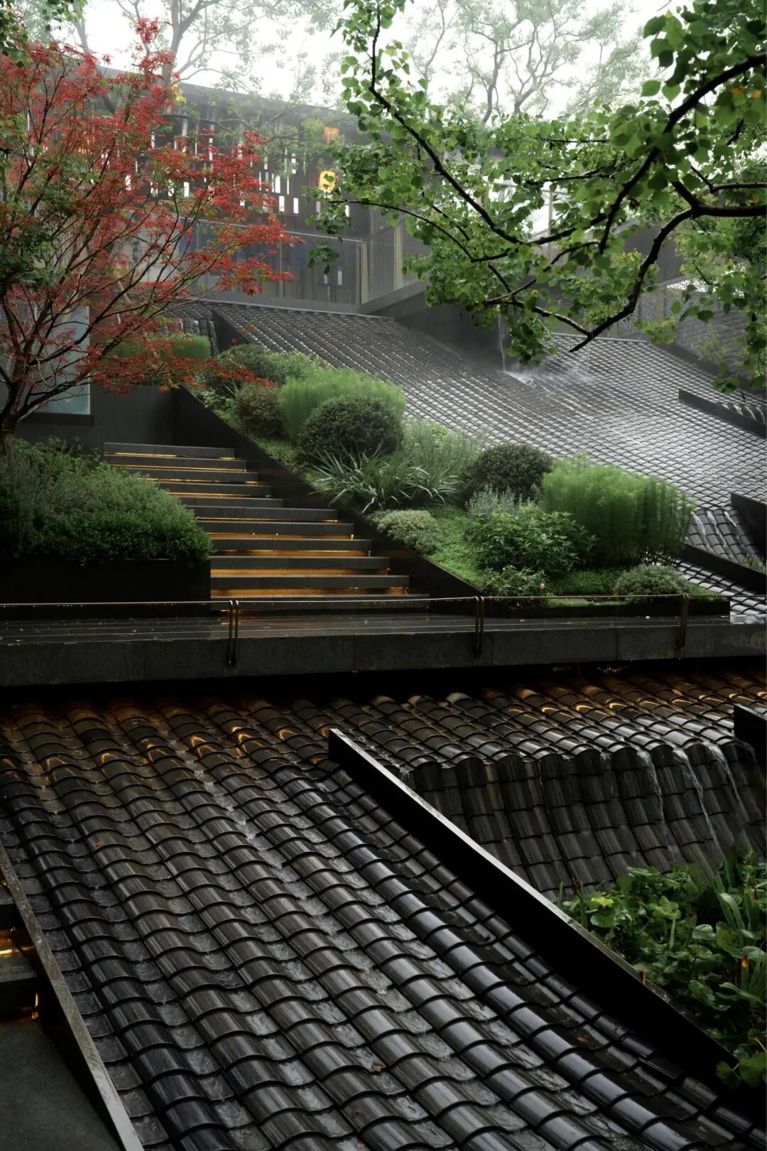 水院中庭+山水叠瀑的屋山峡谷景观。