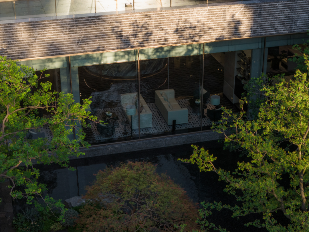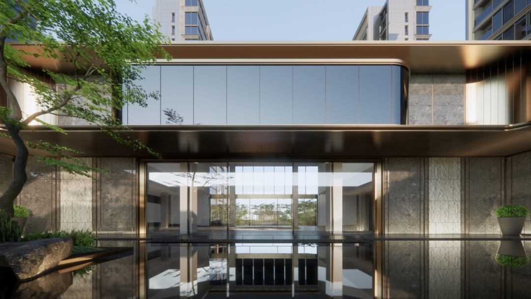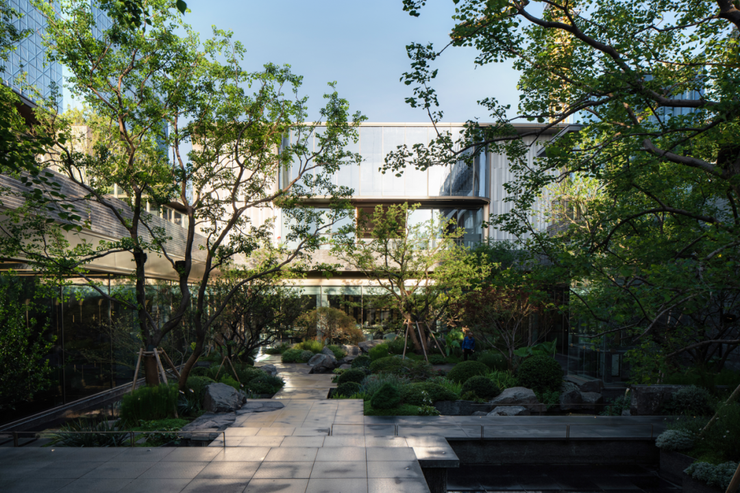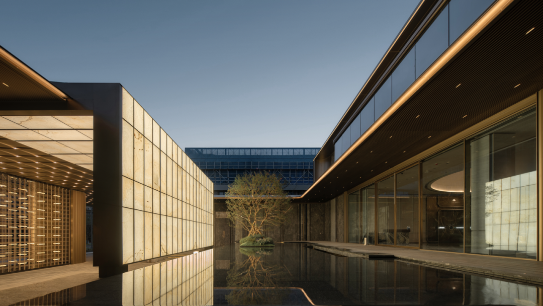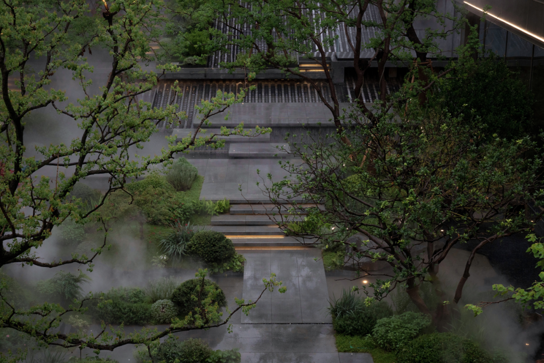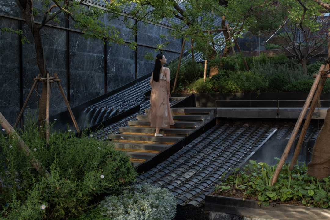 水院中庭+山水叠瀑的屋山峡谷景观。