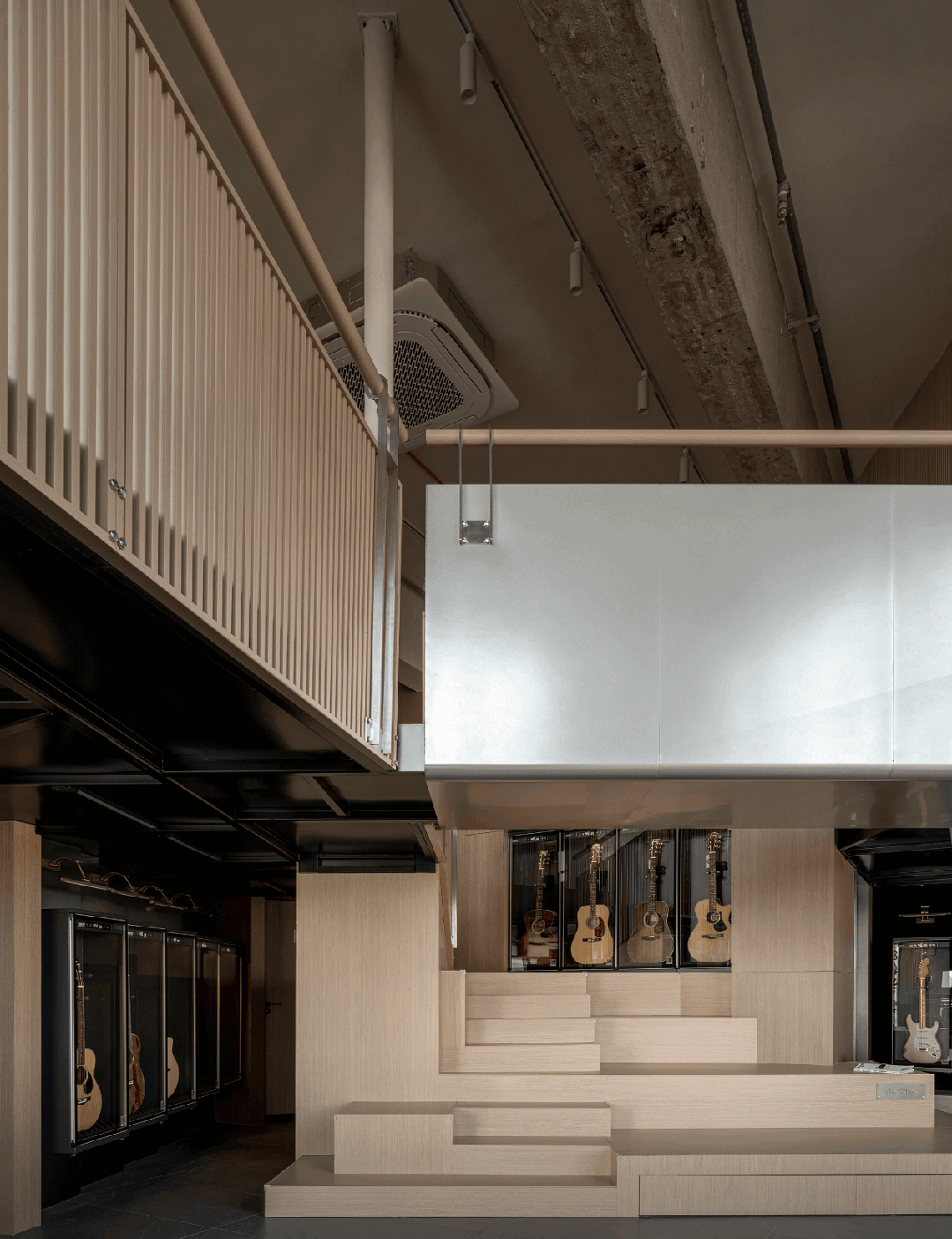 阔听 Chording 是一个音乐集合空间,这里有乐器产品的展示与售卖、录音室和教室,同时承载着多样的音乐活动。我们希望它不仅仅是一个场所,而是能汇聚人群,吸引优秀音乐人才的精神节点。
