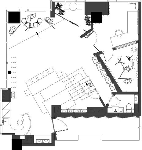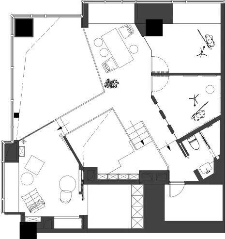 我们在空间里植入了灵活的家具体系,并且在适当的时候将其隐藏,在保障空间设计整体性的前提,让空间的功能尽量复合。
