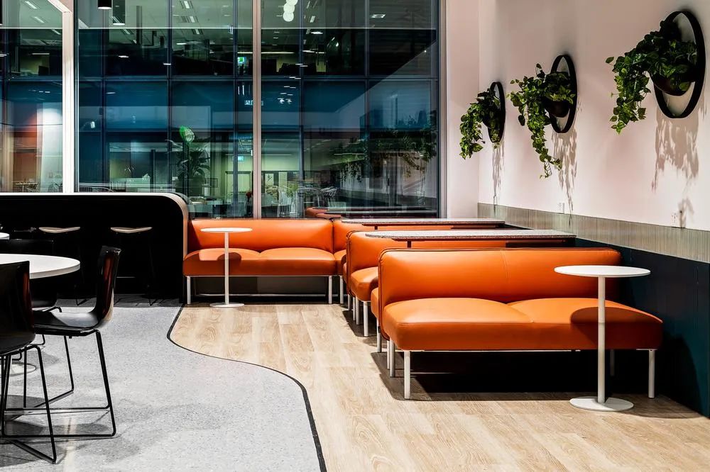 通过大量的绿植装饰和图形设计,最终创建了一个令人耳目一新且充满活力的时尚工作场所。曲线形设计元素为空间增添了精美的高级格调,而精心挑选的家具和色彩搭配也进一步助力空间氛围的营造。丰富而多元的工作场景设计,为BAE不断壮大的团队和各个部门的不同需求提供了灵活可变性。