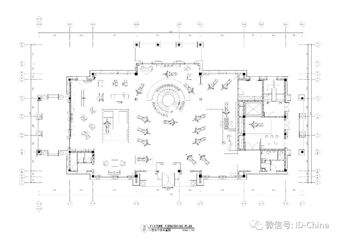 空间动线以入口为起点,围绕着大型艺术装置旋转楼梯展开,同时也是一层到二层的垂直交通,选择放置在建筑中央,同时避免了传统旋转楼梯中心承重的结构特点,将中心区域的面积尽可能扩大,以满足互动功能。