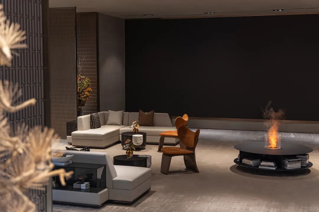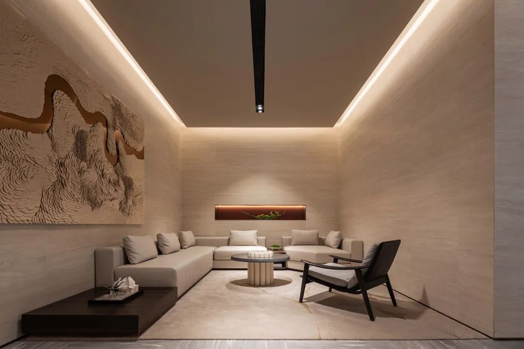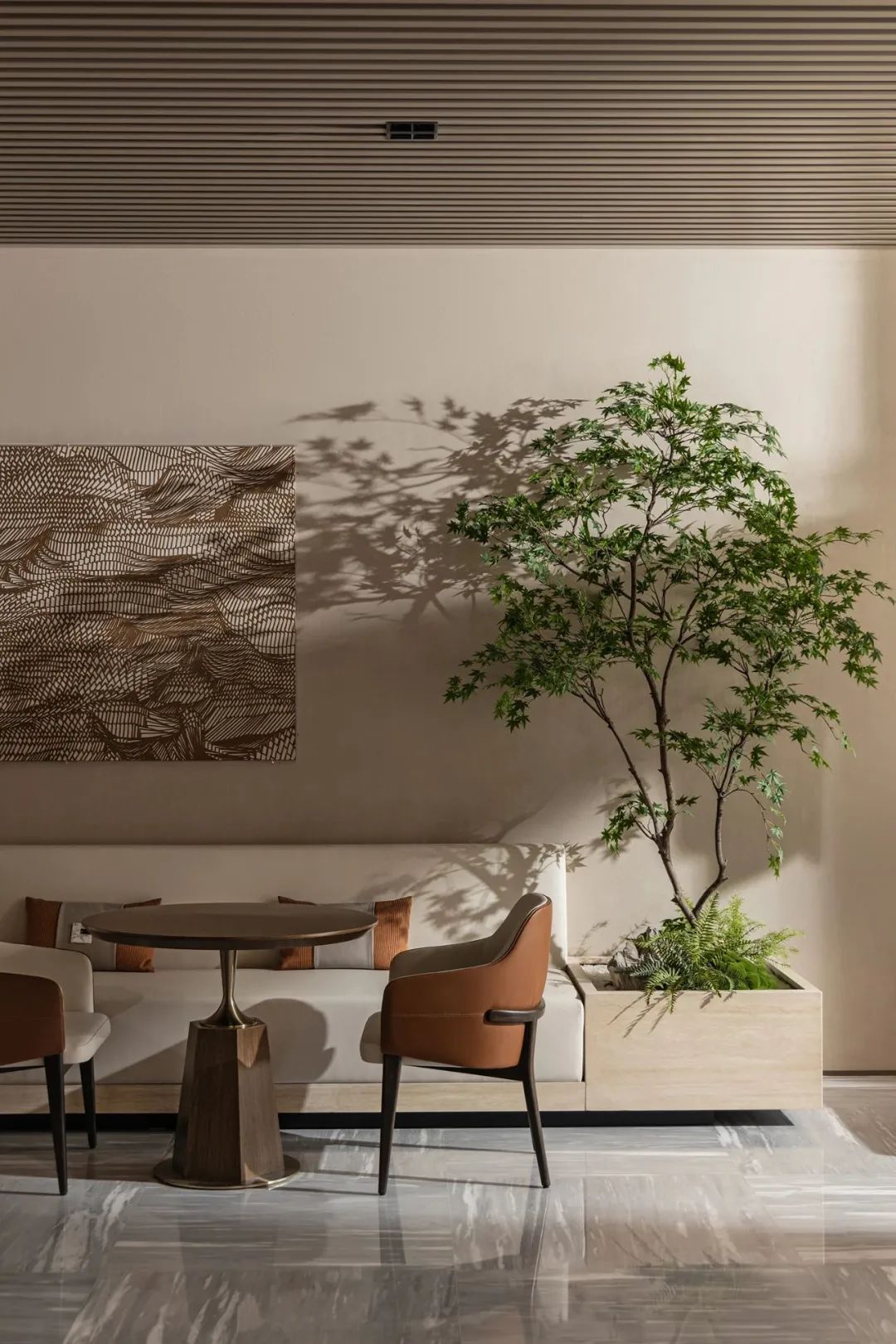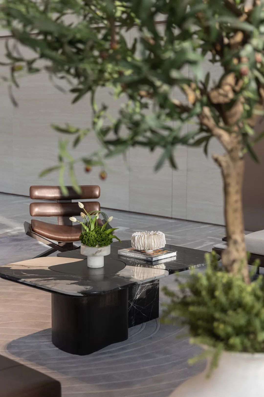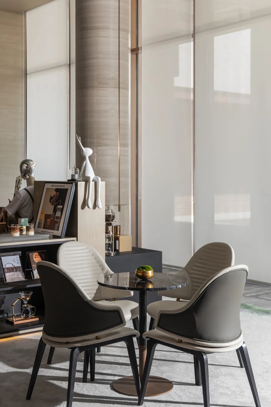 休憩区从大处着墨,写意勾画空间轮廓与人文气韵,于大处中描摹细微,诠释顶格圈层生活。