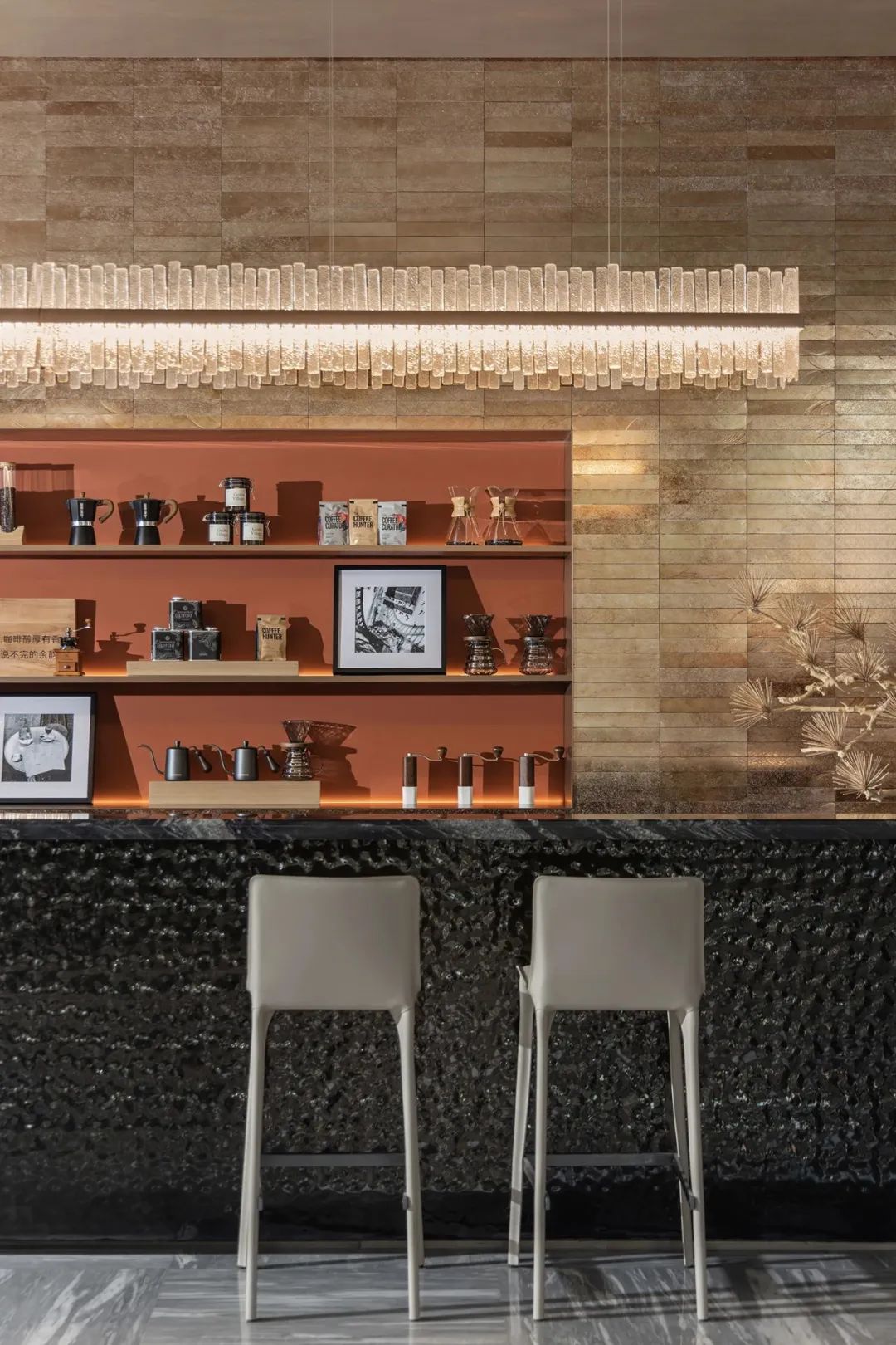 秉承多元的历史文脉与城市文化,独属于济南的精神内涵以不同的方式在此延续。吧台区艺术与人文融合共生,水晶吊灯如泉水淙淙,慢品时光朦胧而清透。
