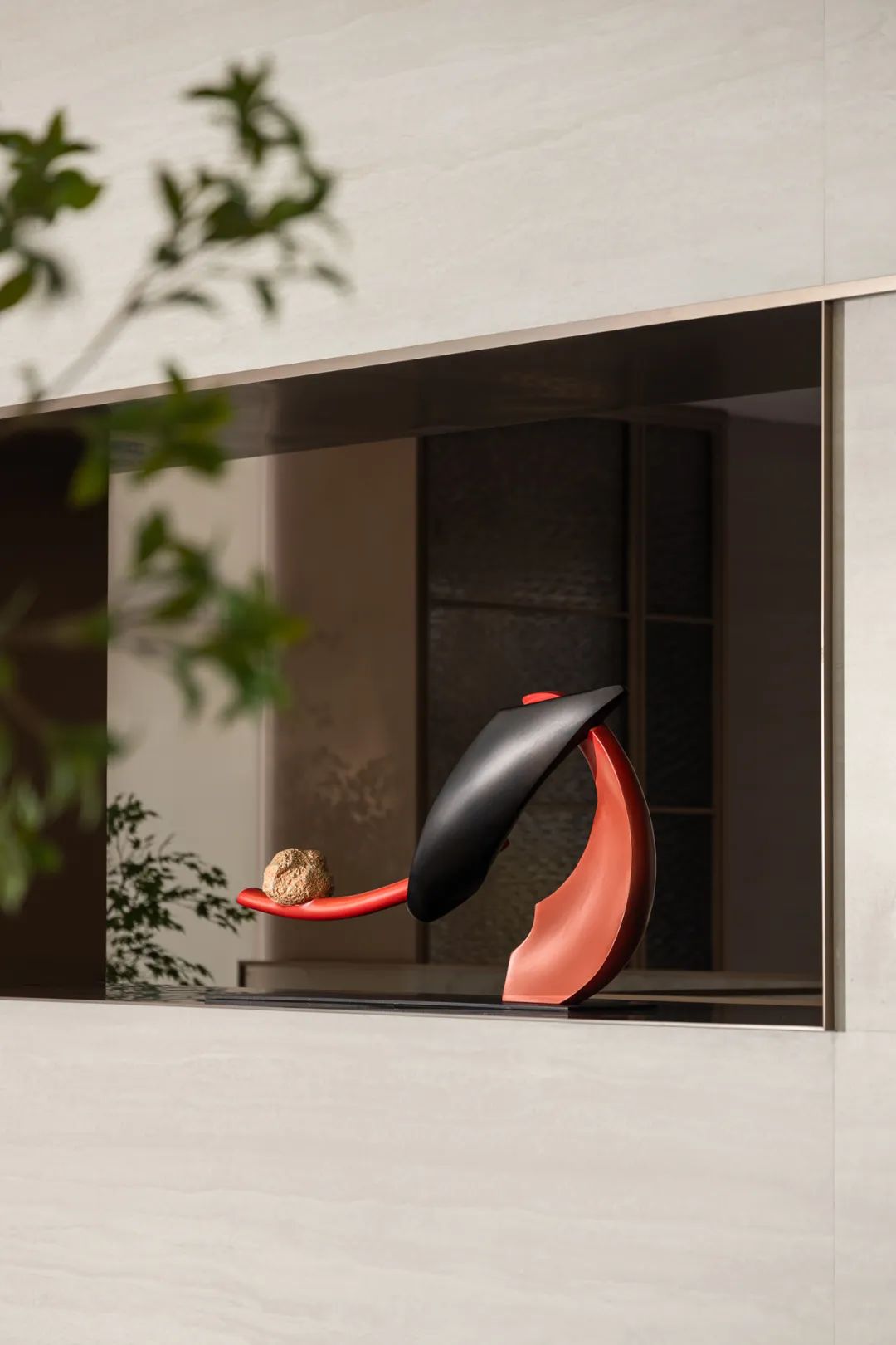 开阖从方便,乾坤在此间。净透之门连通内外,庭院入眼浓绿、令人心醉。摆台设计铺叙温暖柔和氛围感的同时,流露出生活的喜趣与俏皮。