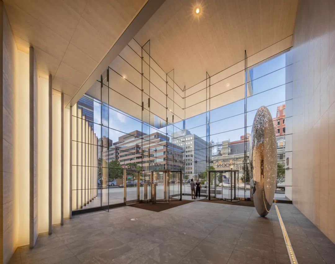 这个将近50,000平方米的办公楼是华盛顿特区中央商务区的门户。项目在有限的体量内实现了更高的的密度。首层入口是一个通透明亮三层高的挑高空间,迎接到访的人们。