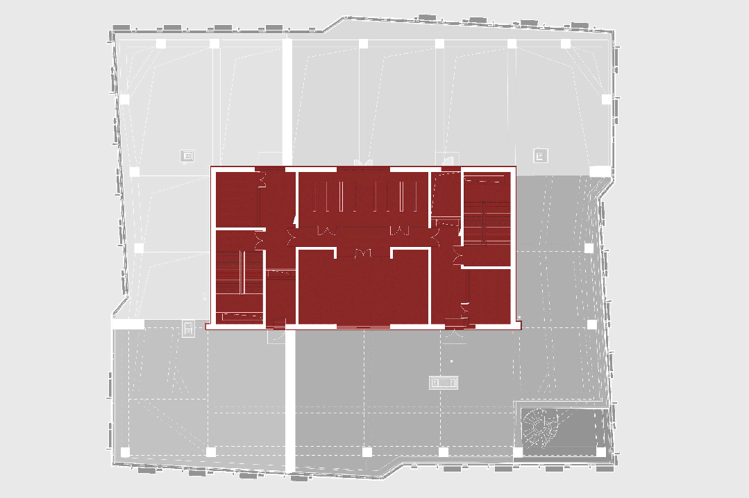 the columns and the space above the core tube, the design finds a way to hide
