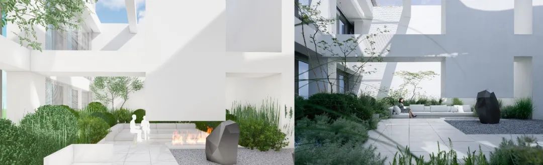 shrubs to grow.最后在原有的梁柱空间基础上,顺应不同户的室内设计风格,用两种完全不同的空间策略,创造出了黑白两个性格的花园,我们将他们叫做黑苑|白庭。As a result, the design applies two