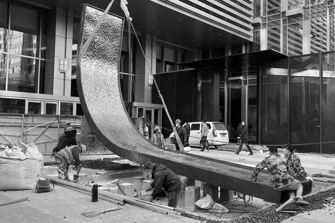 ▼雕塑基础结构施工过程