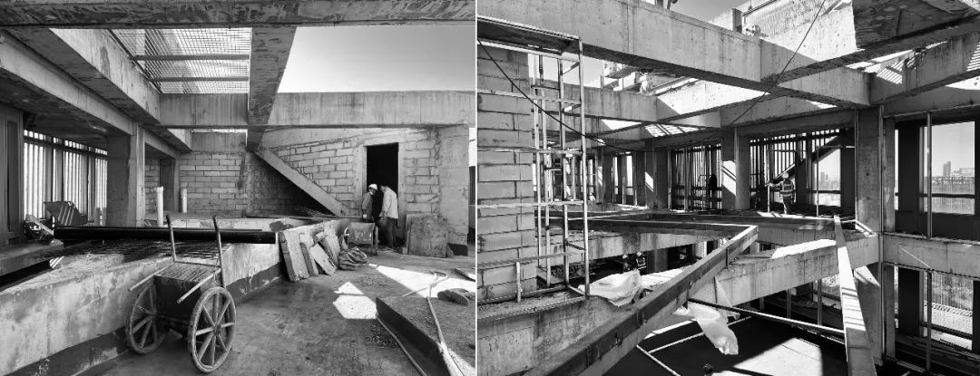 branches.▼黑苑温泉派对区结构施工过程 ▼黑苑连廊结构施工过程