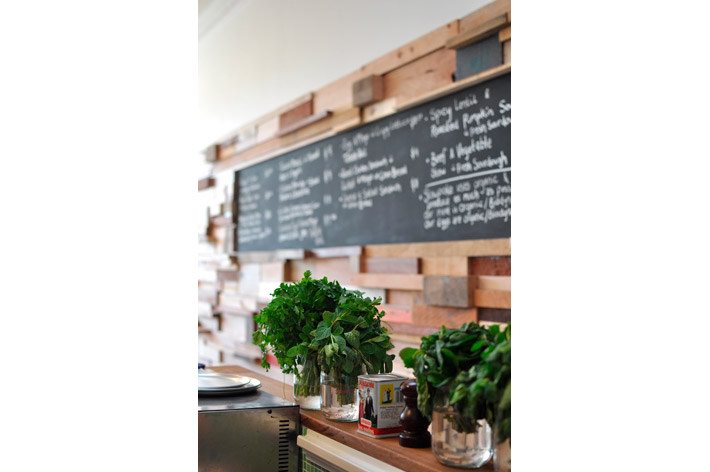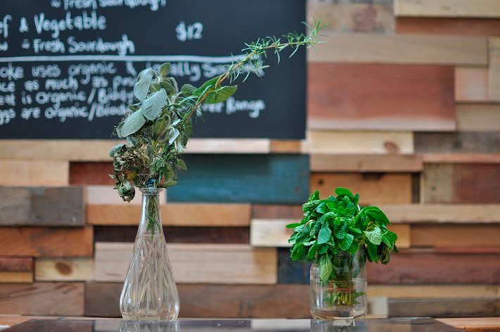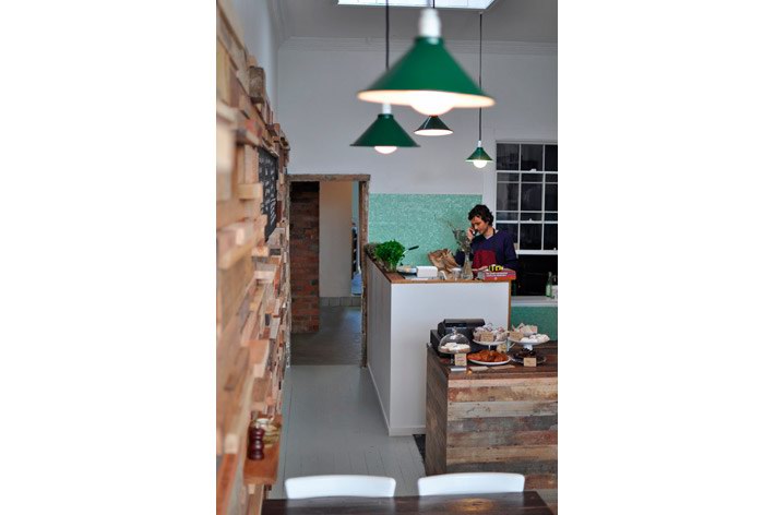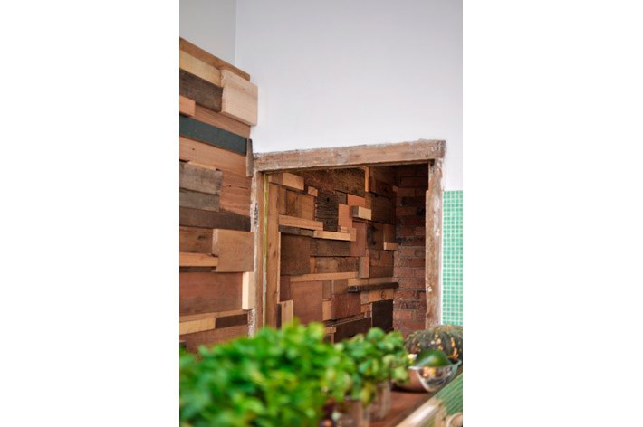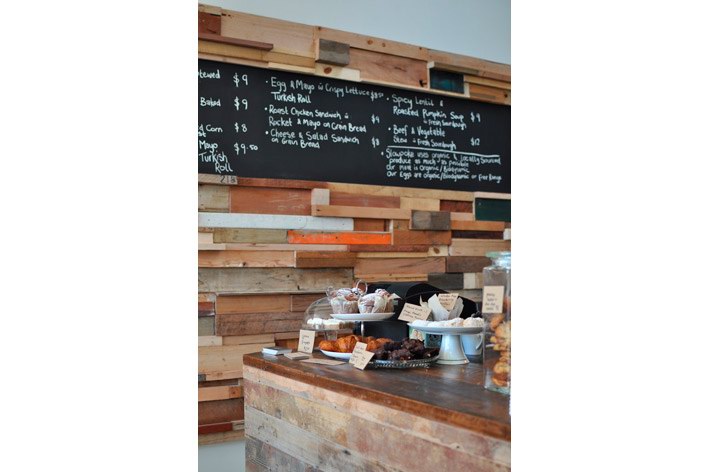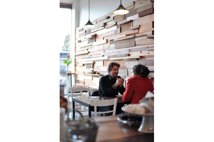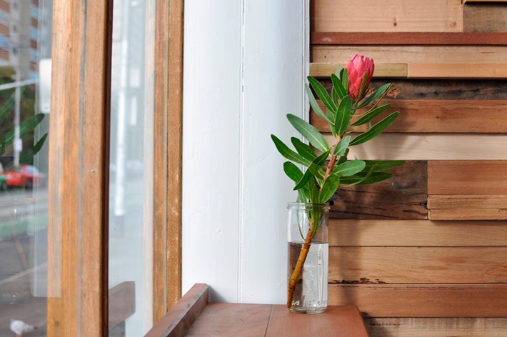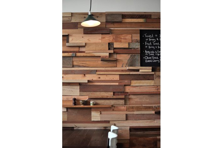 这间由法国设计师Sasufi设计的咖啡店位于澳大利亚墨尔本,店铺装修采用了环保可再生设计。店内有一面12米长的由木材边角料拼成的墙,墙上一些木块突出墙面为每张桌子提供了放置调味品的架子。一条黑板镶嵌到木墙内,上面是所售产品的种类与价格。 Slowpoke咖啡店内的台面由回收的木地板制成,家具则淘自当地的跳蚤市场。整个店内给人感觉质朴温馨,营造出一种家的感觉。木材的大量应用让人由视觉联想到嗅觉,仿佛传来了阵阵混着木香的咖啡香味。