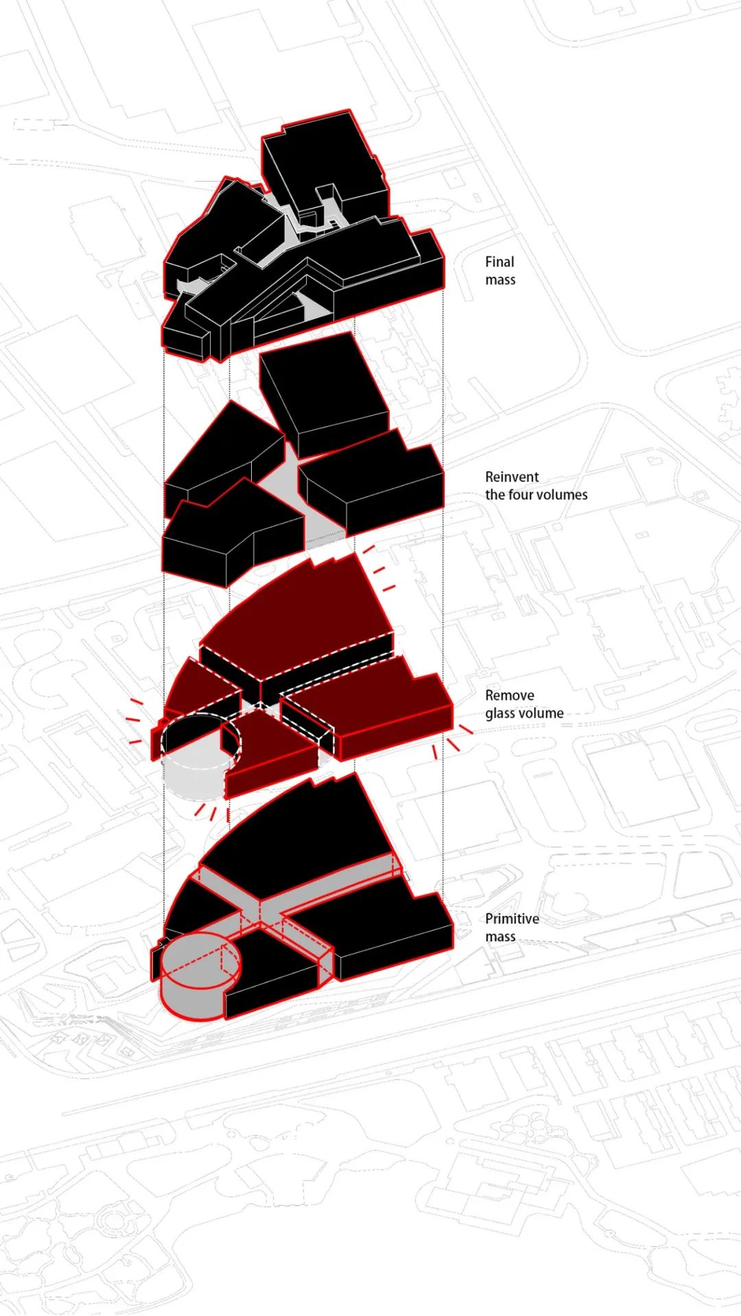 ◎分析图:体块拆分的设计过程