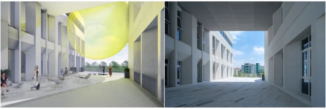 上海拥有独特的城市空间和建筑基因,“文化”是现代上海的城市根脉。在场地周边,有诸多历史风貌建筑,且临近华师大校园。所以在对项目的改造中,我们积极的渗透文化与历史的传承,用空间来完成历史与现代的对话。这里虽不是历史保护地段,但它一样是在旧改的过程中营造一个开放的、全新的城市空间。同时,作为对长风公园的回应,我们希望公园的绿色能自然的延伸至场地之中,让建筑的使用者能够真正的“拥有”这片湖光山色。