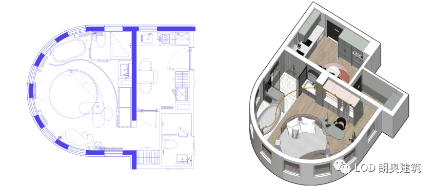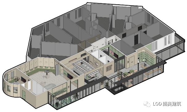 服务水吧则代表暧昧片段,是莫吉托酒精氛围,将时间切换至聚居族群的功能空间 。