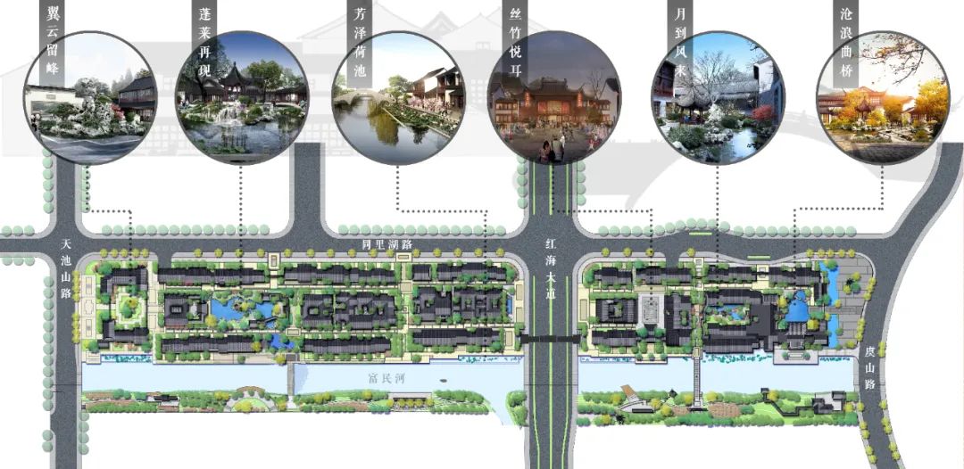 联系东西地块的廊桥连通南北两岸的古桥
