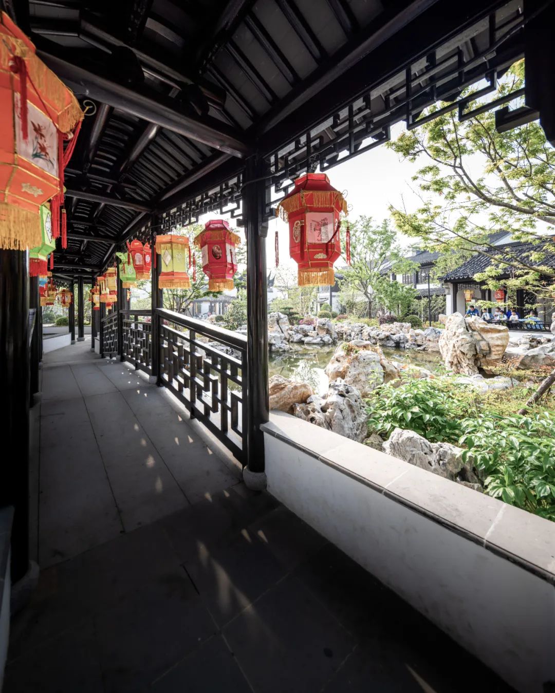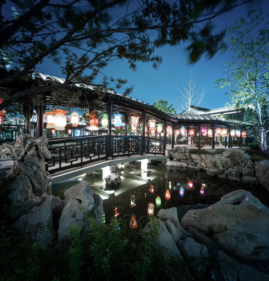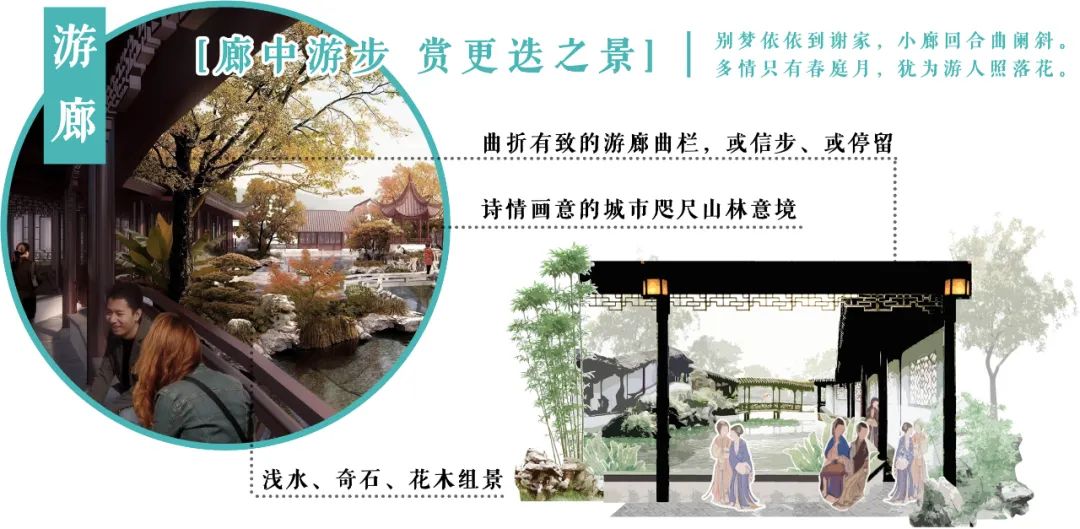 移步换景、巧于因借的沿河街“蓬莱再现”中的水廊“沧浪曲桥”中的爬山廊