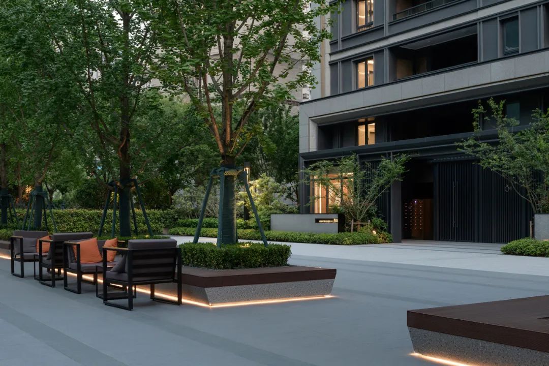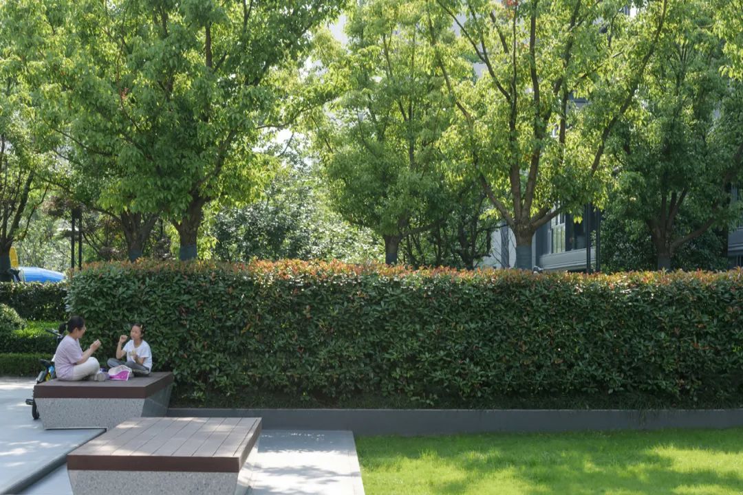 多样的休息坐凳就像水岸边的小舟,与整个场景形成一个整体,高低错落,相得益彰。特意加宽的形式,更是满足了不同人群的使用需求。