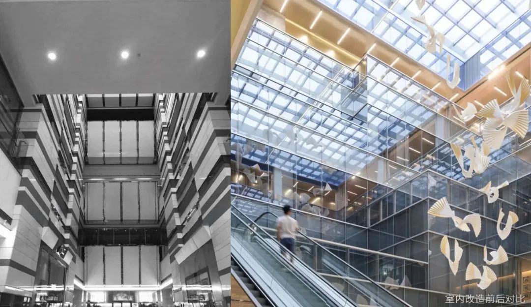 项目自带双地铁上盖天然区位优势,但随着时间与城市面貌的日新月异,外部环境陈旧,内部经营逐渐呈现消极的一面。此次更新改造涉及建筑外立面、室内、景观、视觉设计等多专业。设计挑战在于改造期间项目不停业,以致协调及运营难度相应增加。