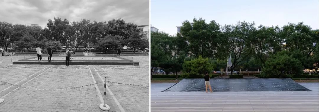 升旗台改造为可供人停留坐歇的场所,放松的欣赏这一池星光。