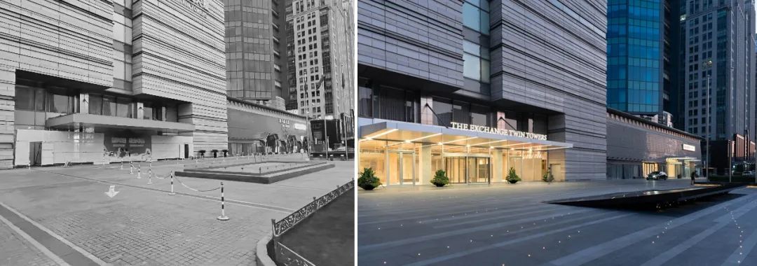 例如本案,景观改造面临诸多限制,但作为旧改项目,我们可以直接感受到现场气氛,明确场地问题与业主需求,并从建筑外立面和夜间入口处的光线启发设计。根据场地问题和业主需求调整空间布局和交通流线,最终完成设计,为老项目注入新活力,继续发挥其价值,甚至创造新的价值。