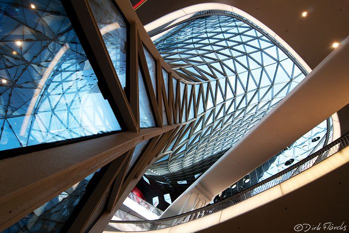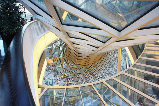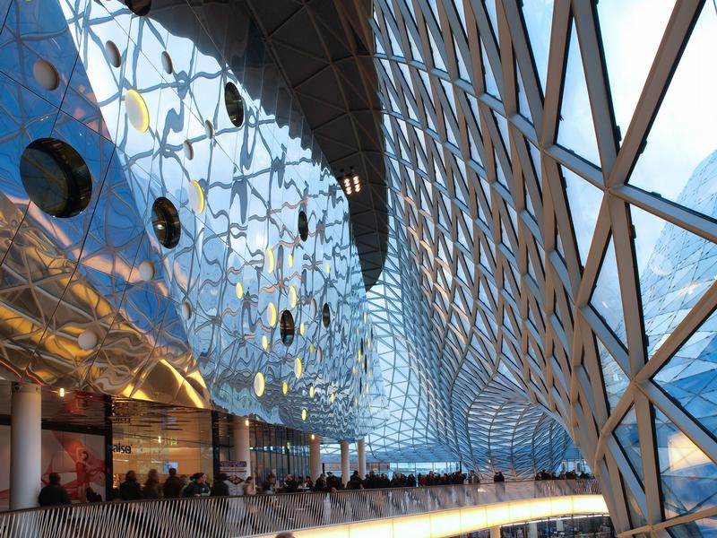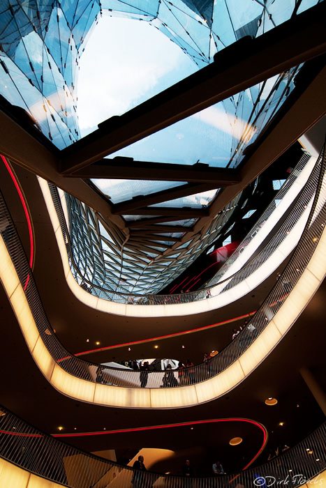 位于法兰克福(Frankfurt)的MyZeil商业中心的主体建筑由让人眩晕的曲面玻璃幕墙组成,表面积接近12000平米。Fuksas 的设计灵感源于峡谷意向—建筑与建筑间的大峡谷。