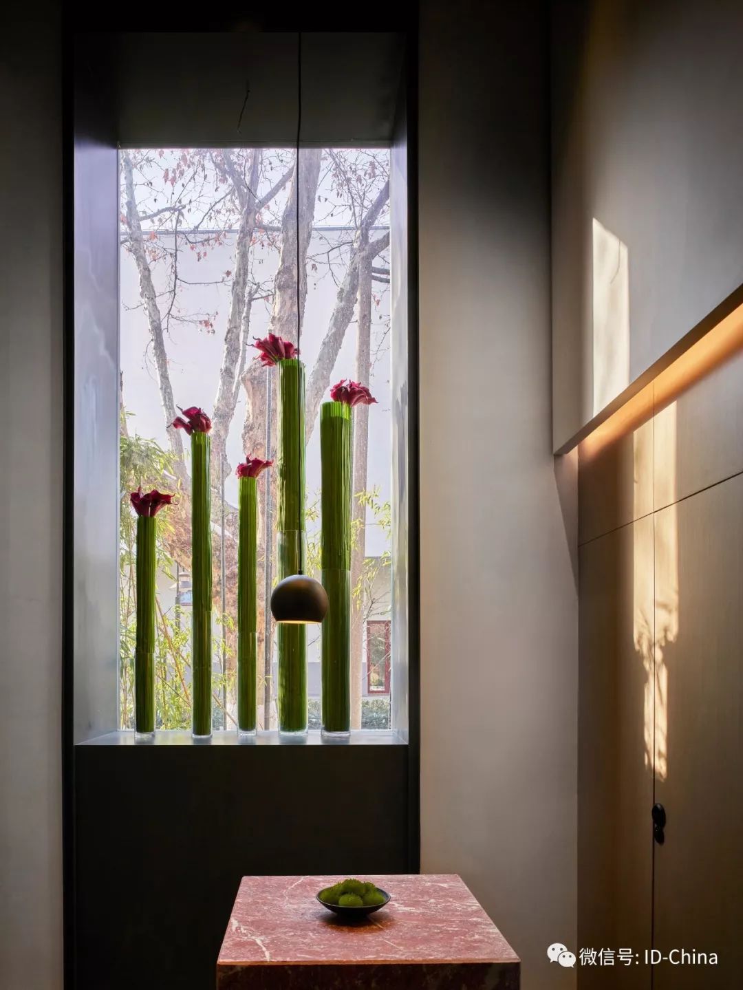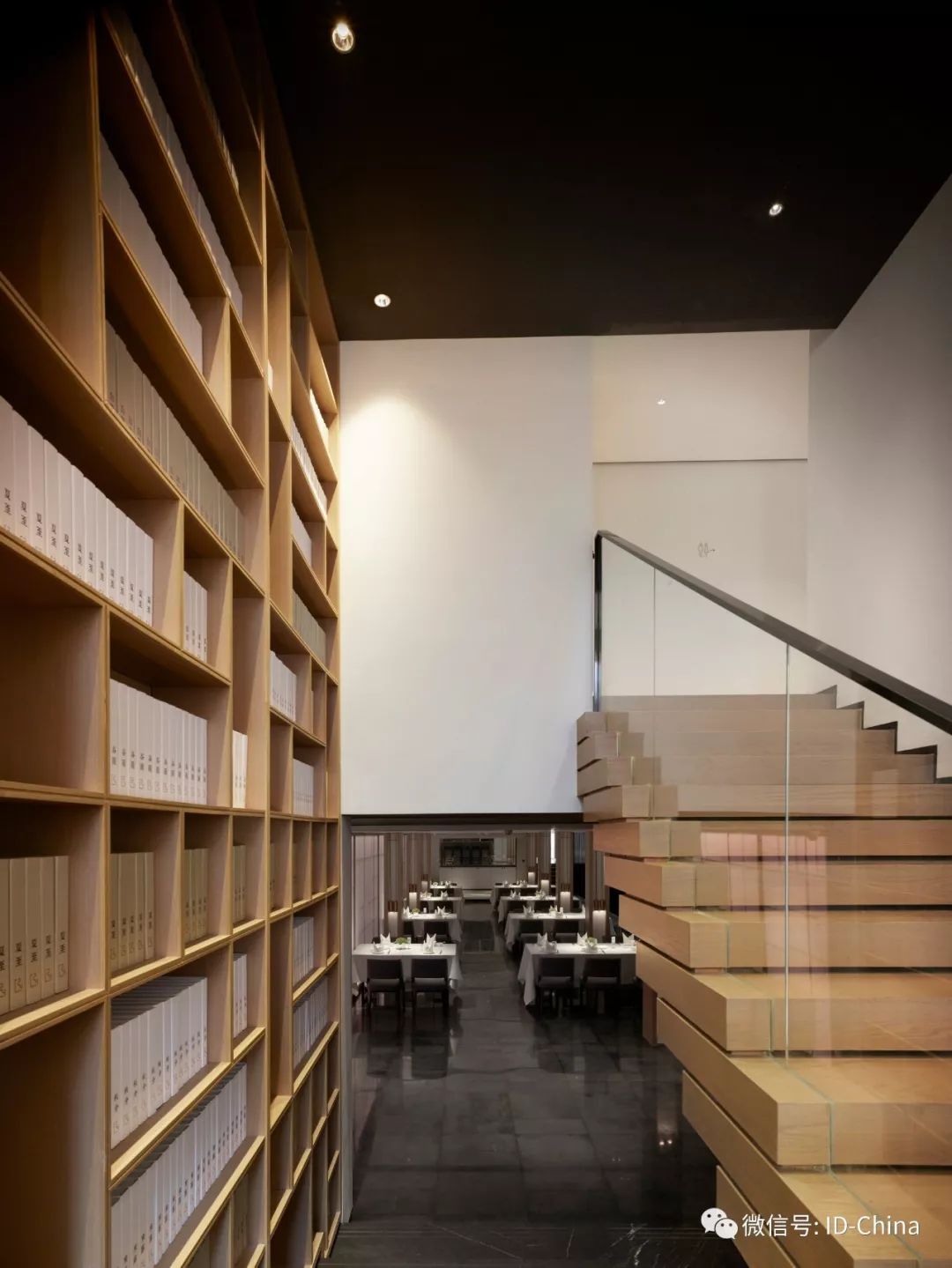 餐厅的整个空间结构分明,功能清晰,动线设置却十分有意思,有种误入桃花源后,仿佛阡陌交错的感觉。也正是这种交通动线的设计,不断引导着食客由最初的探索到之后豁然开朗的心境,整个过程让人很容易忘却建筑外部的喧闹,而全身心地感受并进入空间的核心。
