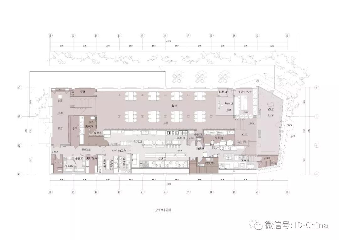 二十四·单餐厅从平面看是一个呈东西向排布,且进深较长的矩形。其东西向各设有一个入口,主入口东临来凤街,而次入口则面向国创园内部,一东一西,一侧市井喧嚣一侧遗世独立,形成了两个截然不同的环境氛围。